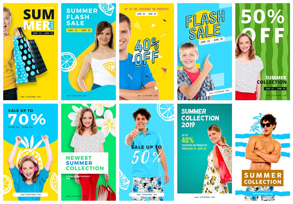 这次老不湿分享的是,时尚流行风格高品质多用途Instagram社交媒体banner海报设计模板1.0,适用于各种社交媒体故事,如Facebook,Pinterest,Instagram等。它专为夏季促销季节设计。