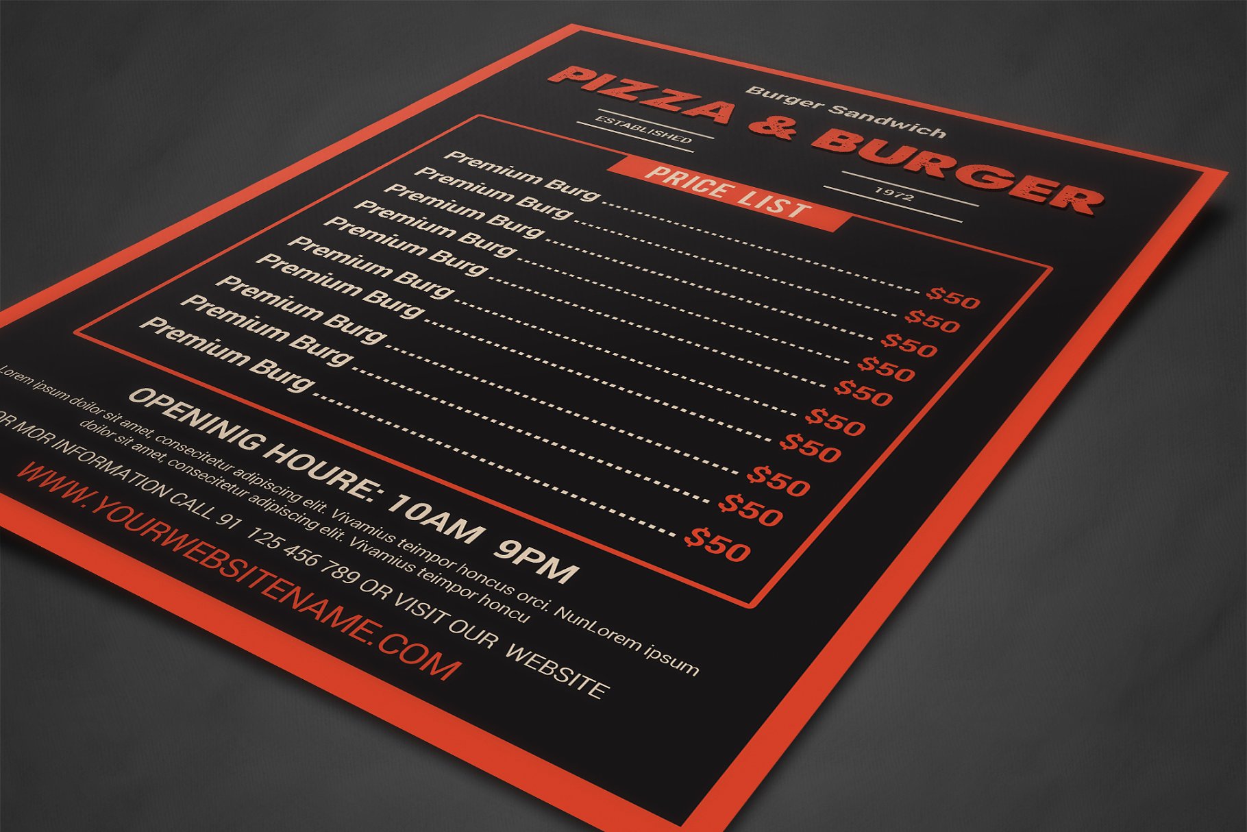 Adobe Photoshop (PSD文件)尺寸A4 210×297cm + 出血线区 CMYK /300 dpi可定制的文本 &颜色(所有颜色都可以改变)通过智能对象改变图像