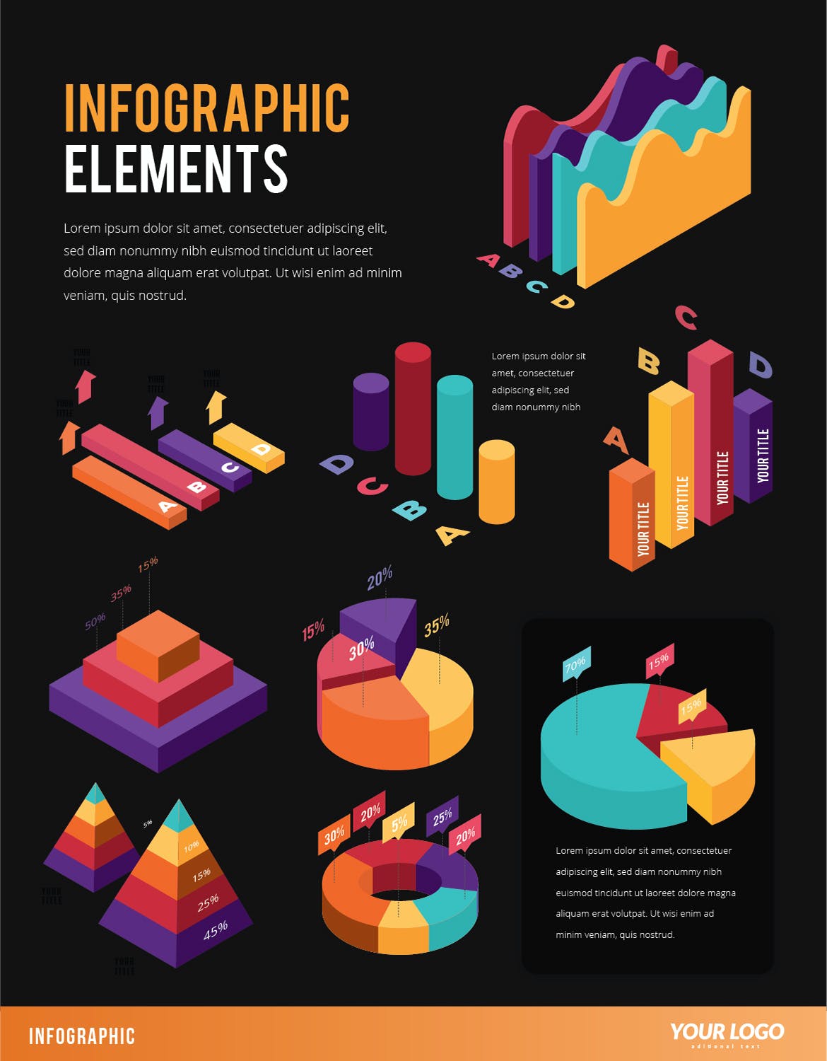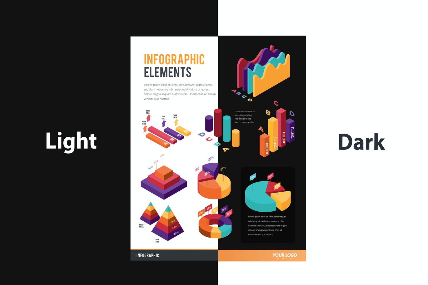 这次老不湿分享的是,2.5D等轴等距3D立体大数据信息图表矢量图标大集合-AI,EPS,JPG,PDF,提供百分比圆圈,图形和条形图,以更清晰地显示您的数据。除此之外,您还可以根据需要编辑整个模板的颜色,文本和布局。