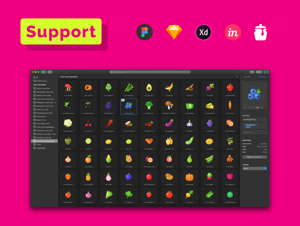 这次分享的是,水果与蔬菜图标合集下载(SVG,PNG,SKETCH,FIG),包含多种常见的水果和蔬菜,特别适合生鲜类APP的UI设计参考,enjoy!
