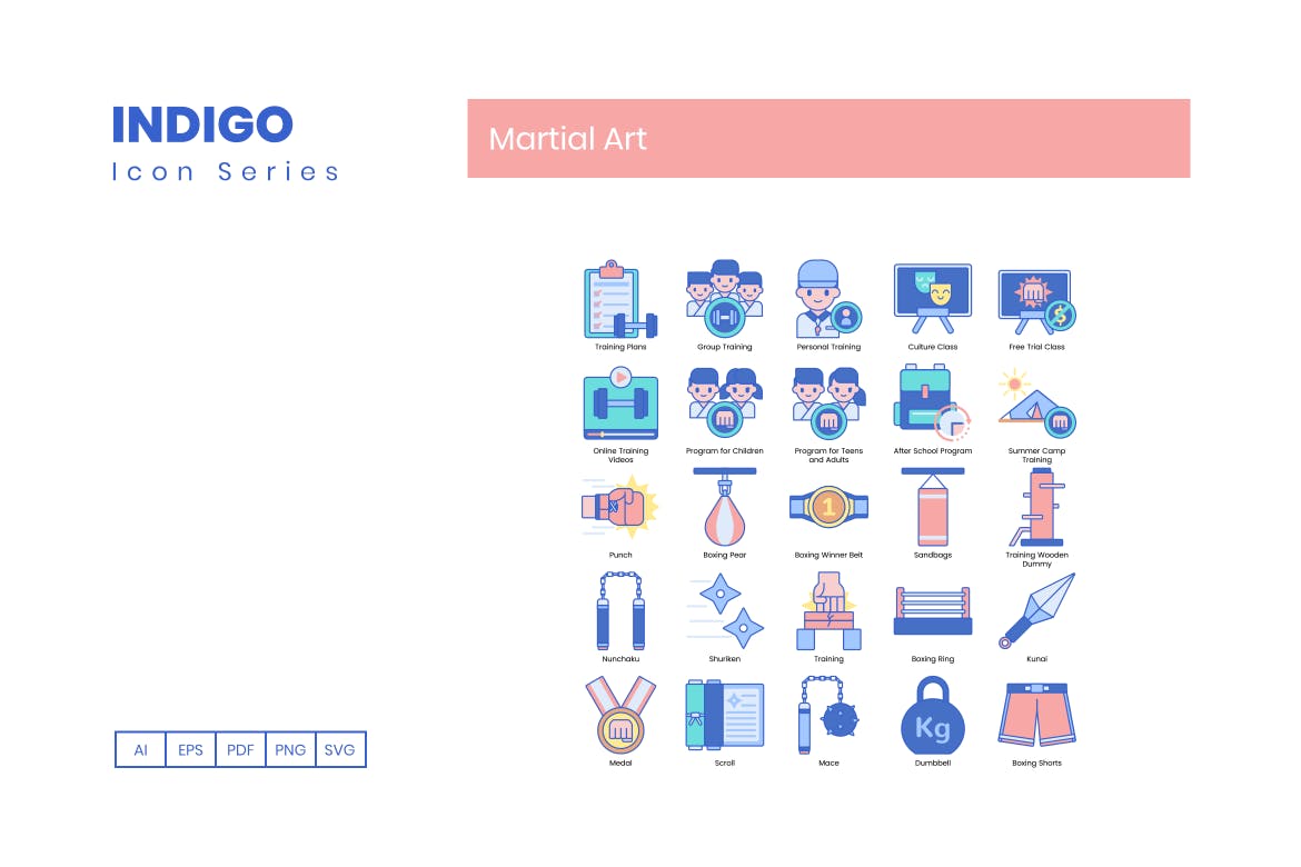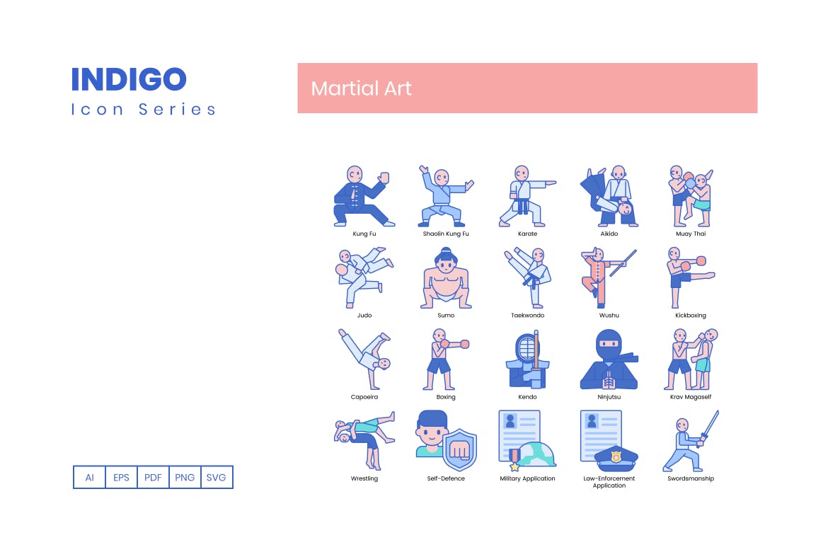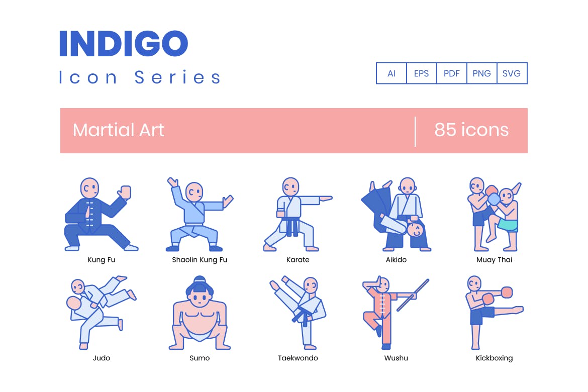 这次老不湿分享的是,85个湛蓝配色的高品质武术运动图标icon大集合(AI,EPS,PDF,PNG,SVG),此武术图标集包括: