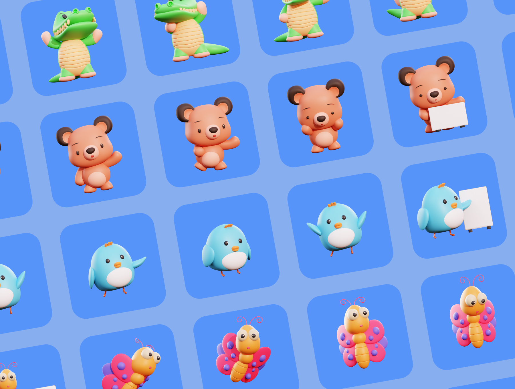 这是一组时尚可爱的 3D 动物角色,可用于任何项目。包括 10 个被操纵的角色,在 Blender 和 Figma 中具有可更改颜色的高质量。在 Blender 文件、Figma 文件和 PNG 图像中带有 50 个姿势,可以轻松地在 Figma 中“更改颜色”,并为您提供简短清晰的说明。