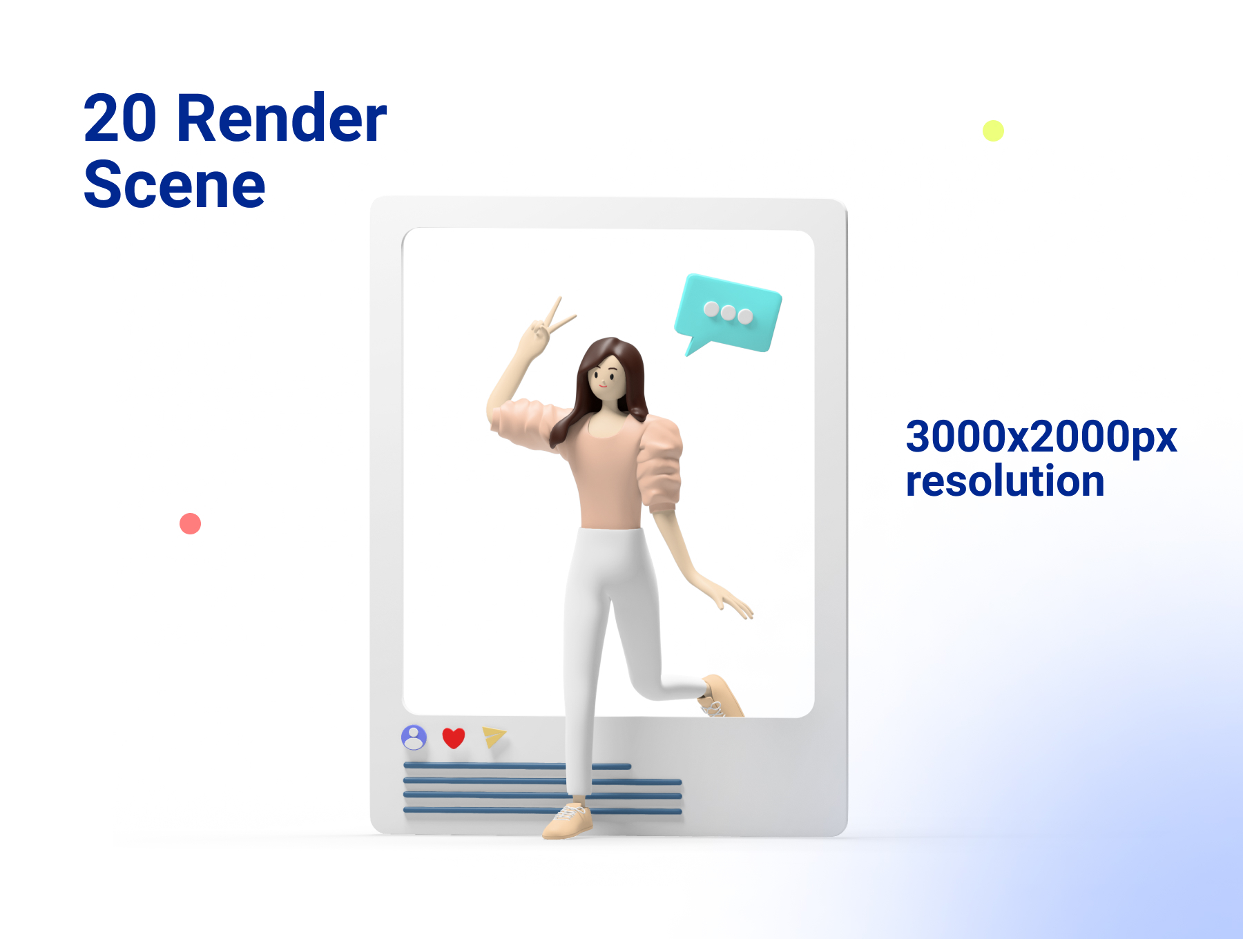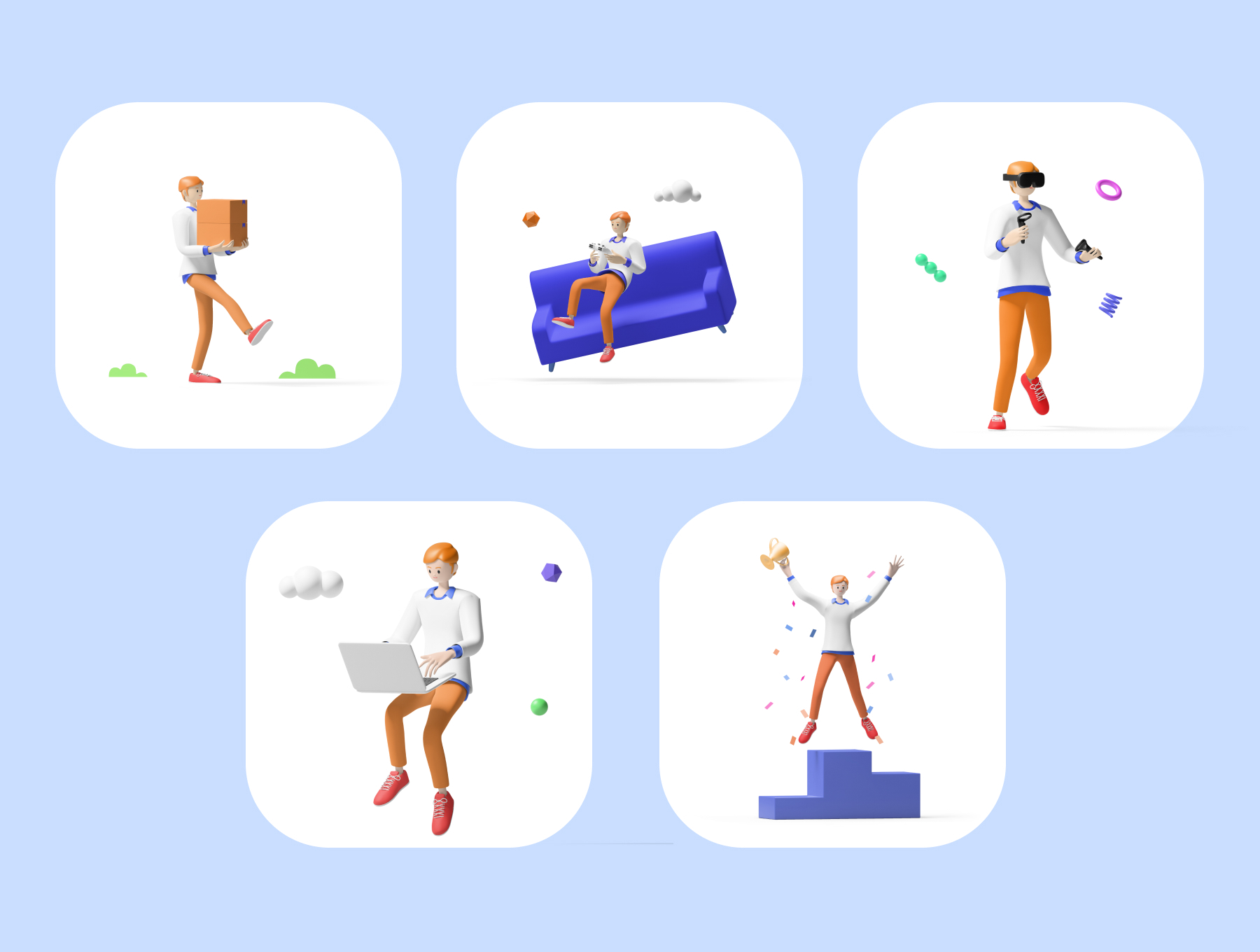 为您的设计项目获得3D插画,性格开朗使您的设计看起来更具吸引力。