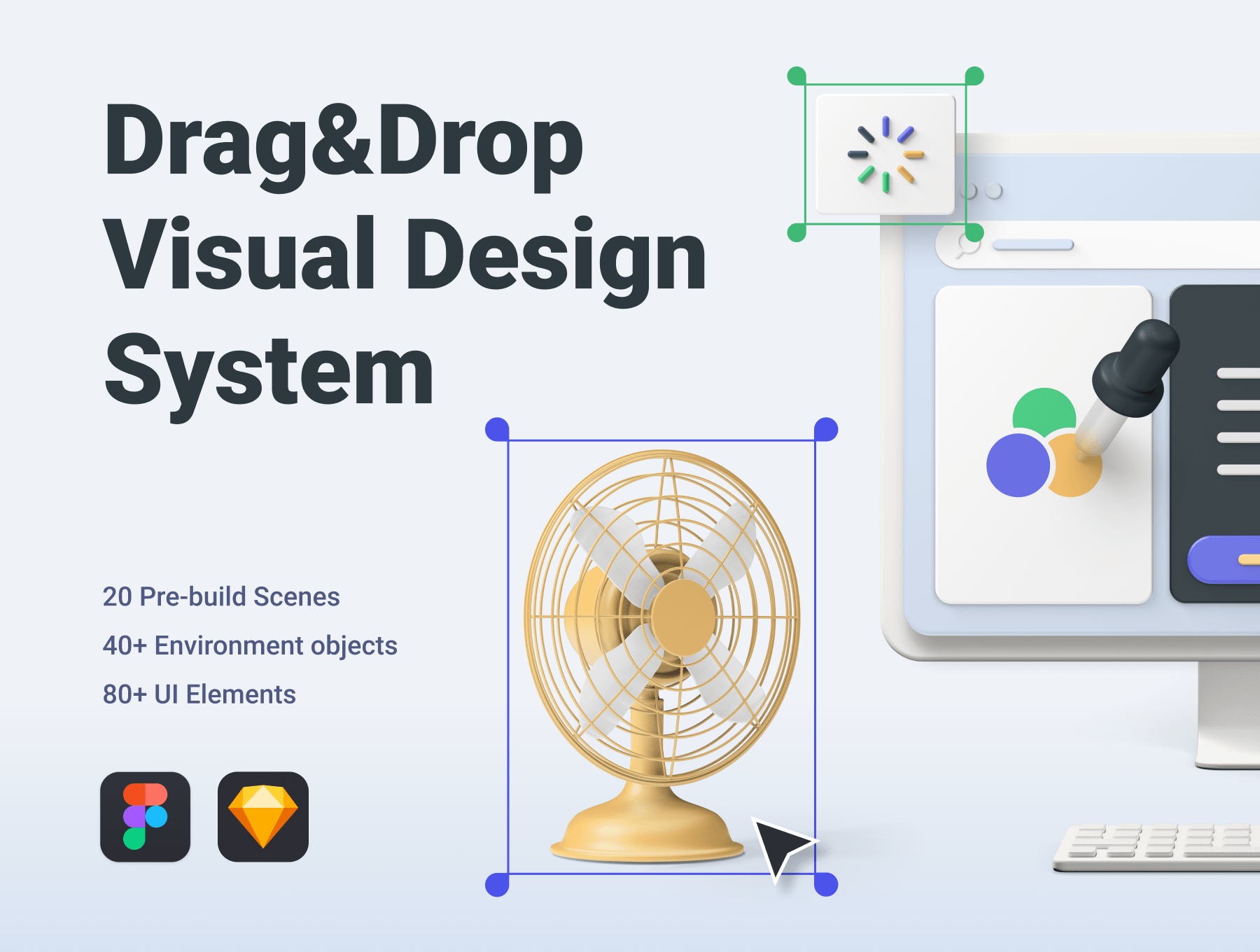 完全可编辑的3D视觉设计系统,具有在Figma和Sketch中内置的全局自动更新样式指南。