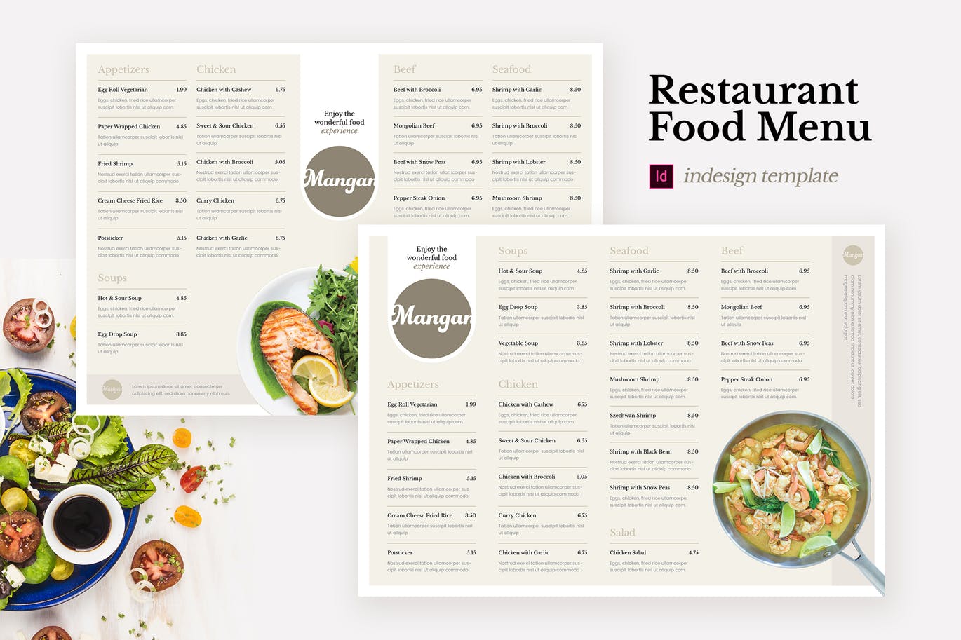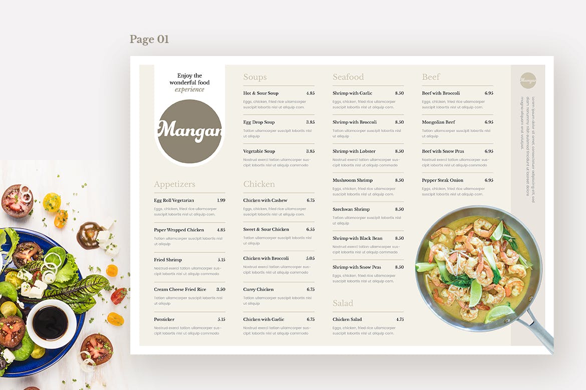 这次老不湿分享的是,优雅多用途的高品质菜单菜谱设计模板,基于Indesign的干净简约的餐厅菜单。下载包括用于CS4到CC2019(及以上)版本的InDesign和Photoshop的文件。可以轻松编辑设计中的所有元素,如文本,颜色,样式和图像。