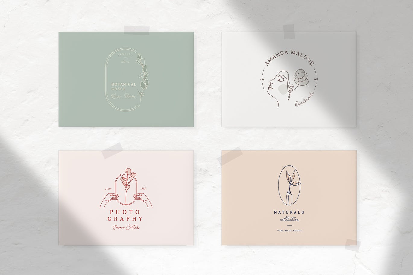 您将获得手绘徽标设计模板,其颜色方案如预览图像7-9(徽标和背景色)所示,但是它们当然是完全可编辑的,因此可以轻松自定义颜色和文本 ……因此创建起来非常容易几分钟之内就能拥有自己的品牌,并以崭新的业务面貌发光。