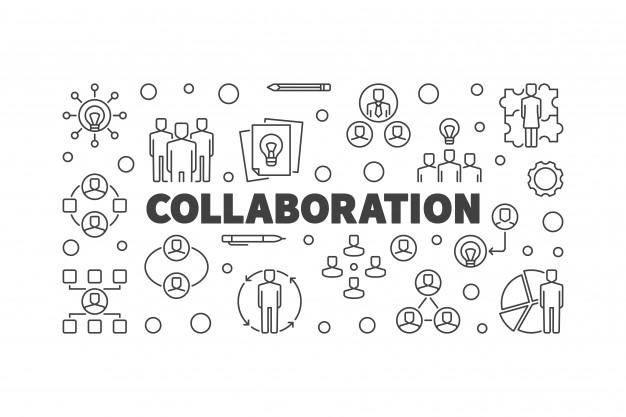 在线协作概念线性图标插图或横幅,简单的图标设计,可以用于在线网页、广告、横幅等设计上。
