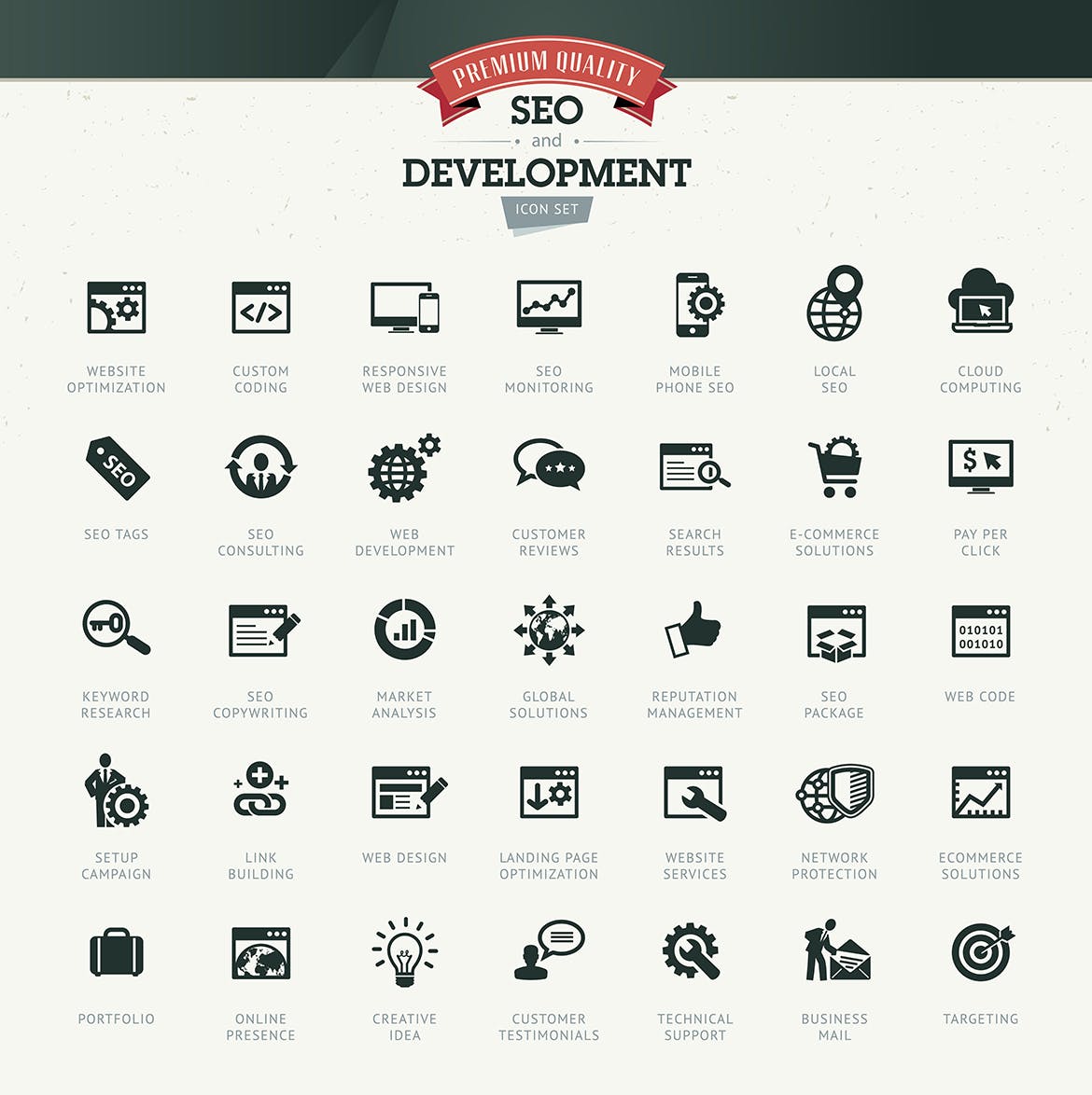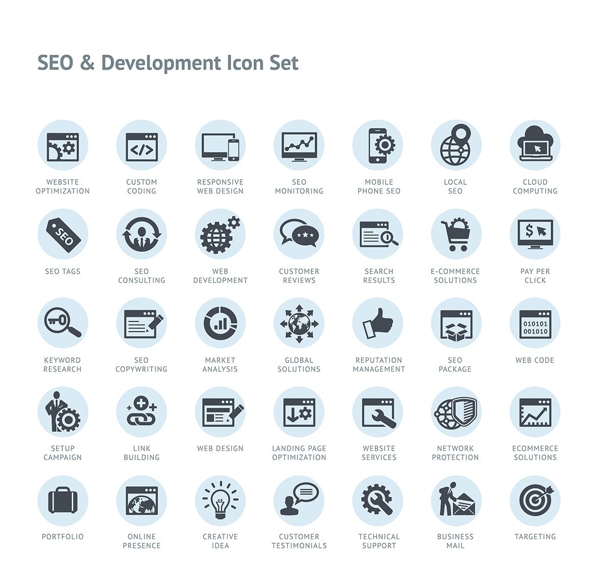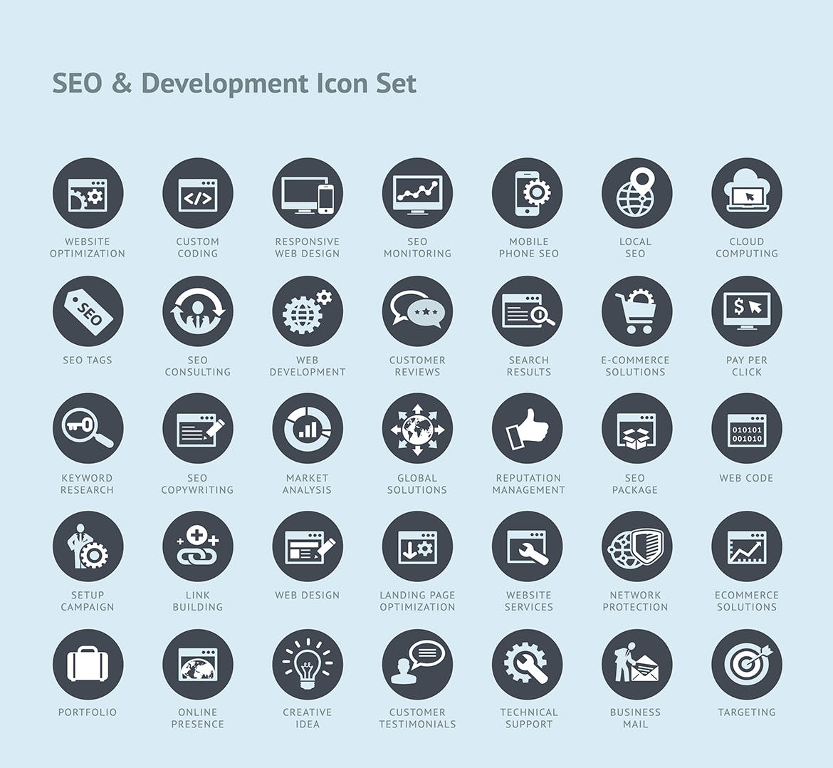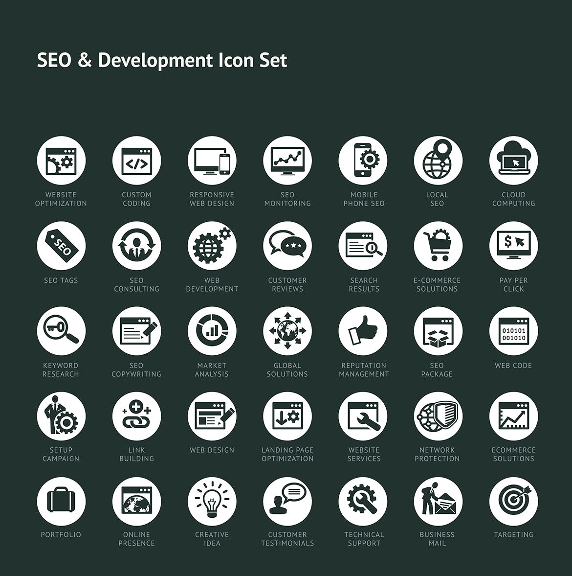 630个现代图标集,可提供广泛的服务:SEO服务,在线营销,社交媒体营销,网页设计开发,电子商务,声誉管理,业务,公司管理,技术。该套件可用于多种用途,例如:网站,打印模板,演示模板,促销材料,插图,信息图表,Web和移动电话服务和应用程序……