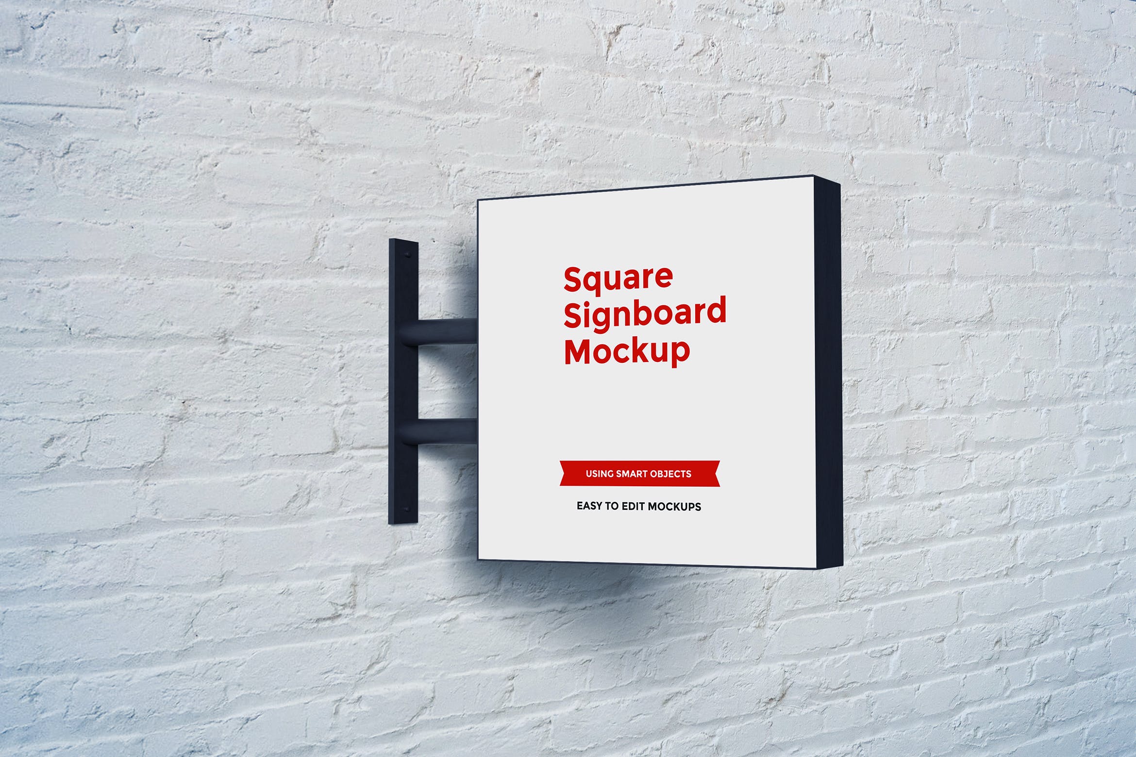 方形招牌广告展示样机素材,将帮助你以最好的方式展示你的作品。在一秒钟内创建一个整洁的演示文稿。只需打开psd文件并将设计放置到智能对象层。