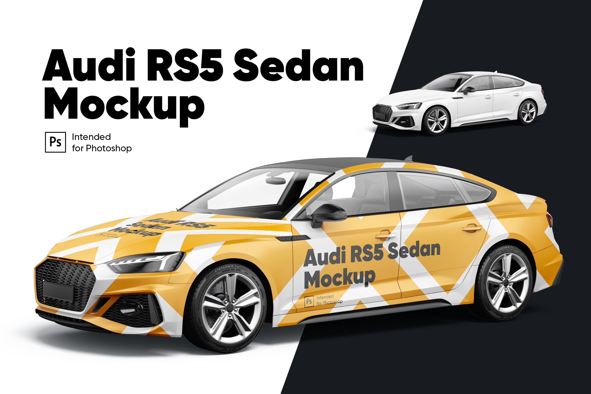 使用这款完全可定制的奥迪RS5轿车外观设计样机素材为您的广告设计创建优雅的演示文稿。 包括智能对象和蒙版,可让您轻松添加设计并更改大多数场景对象的颜色。