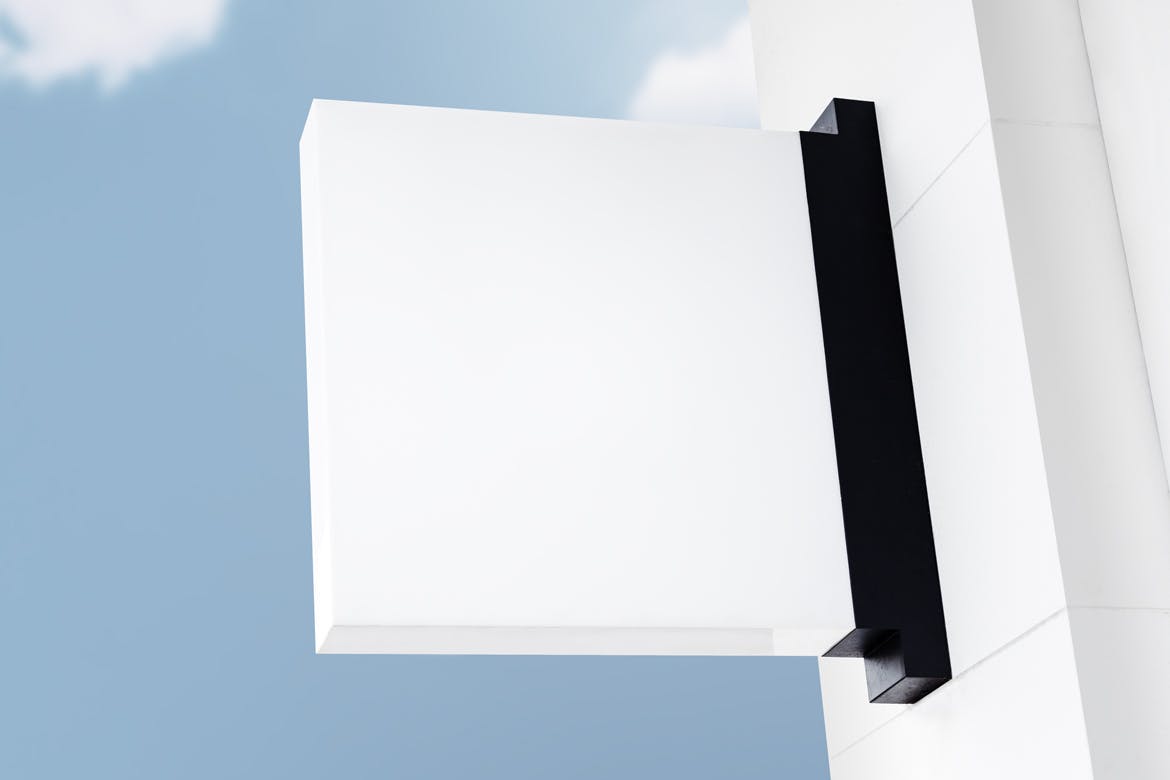易于使用的白色标志招牌样机,在复古风格的天空衬托下。易于编辑,可编辑层,智能对象支持,文件大小:4568 x 3109 px,颜色空间:RGB。