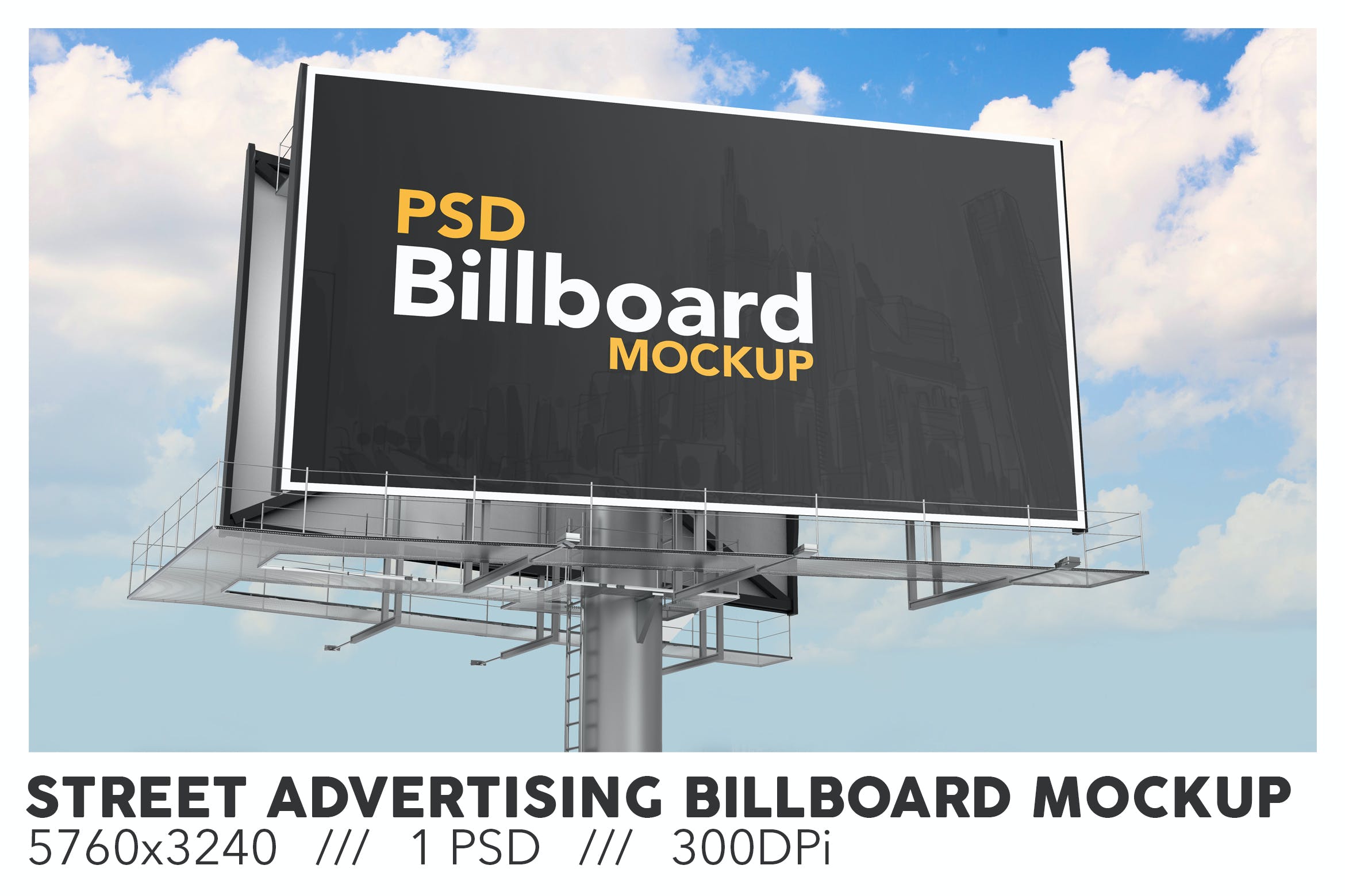 铁架巨型广告牌展示样机,智能对象,高分辨率设计,5760x3240px,300dpi。