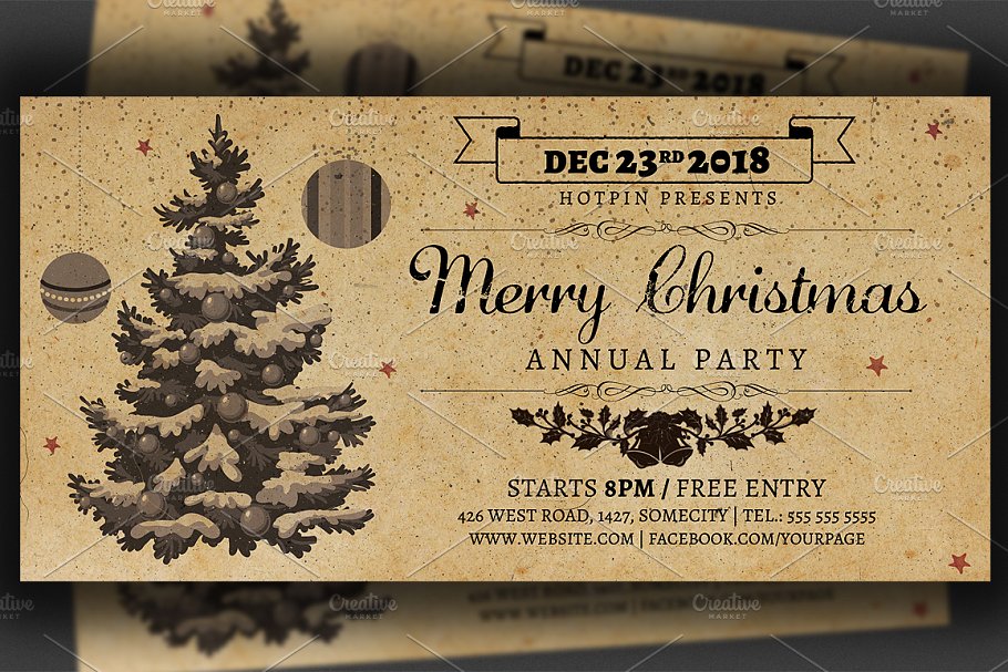 这组复古圣诞邀请贺卡制作模板将给您即将到来的夜总会圣诞活动或平安夜提供完美的邀请函设计素材!