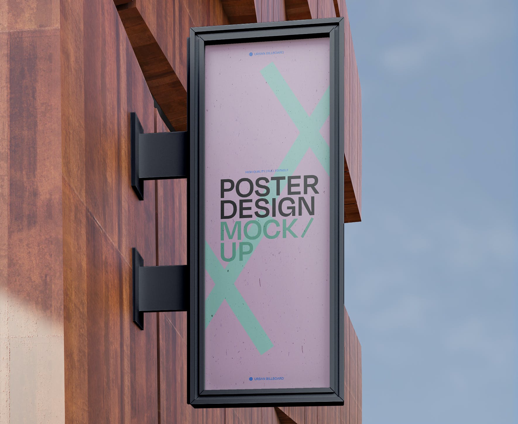 木墙矩形广告海报样机,模板上有一个智能对象可帮助您调整设计。只需拖放即可。使用起来非常简单。使用纯色图层易于重新着色。高分辨率 (300 dpi) 。