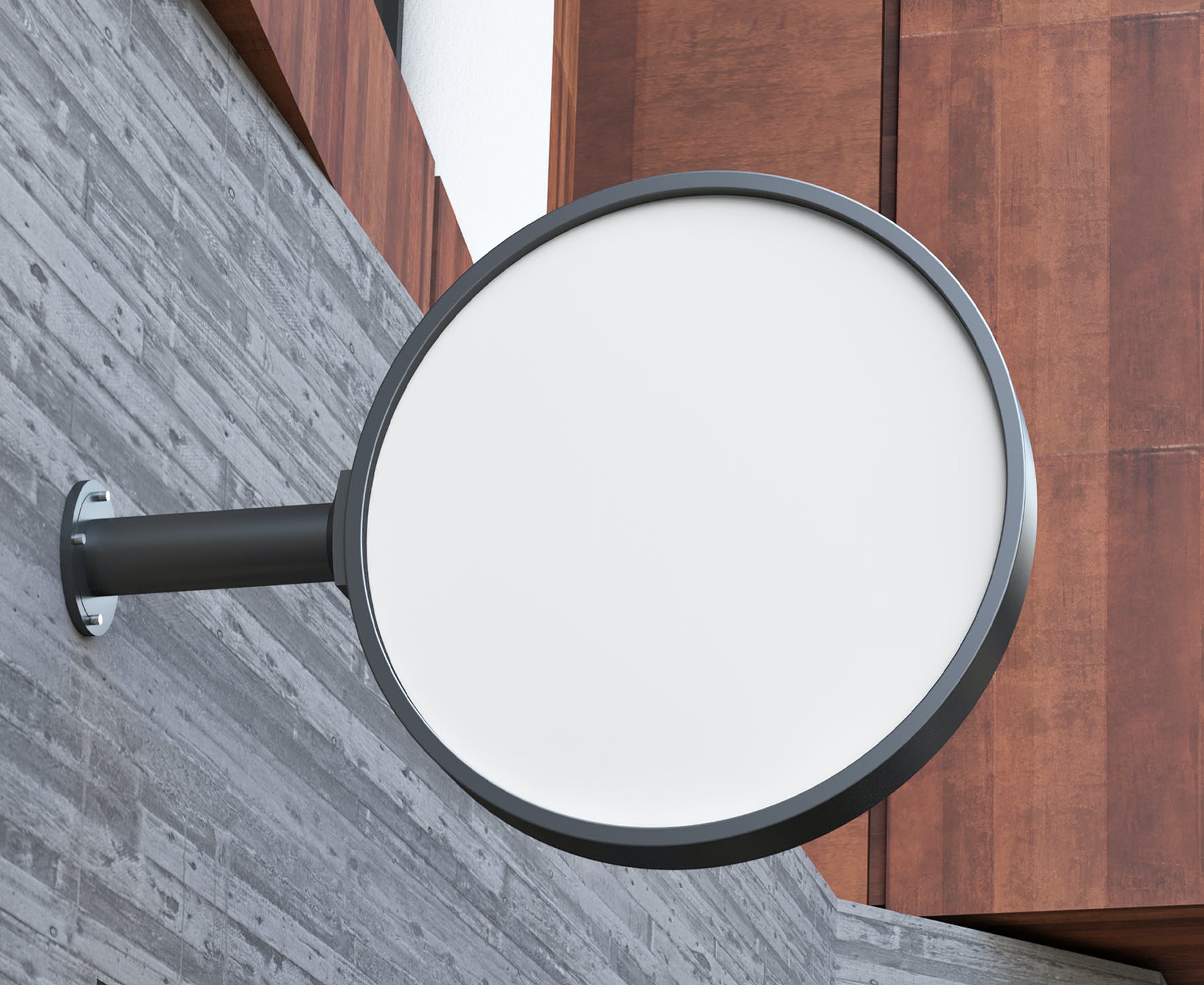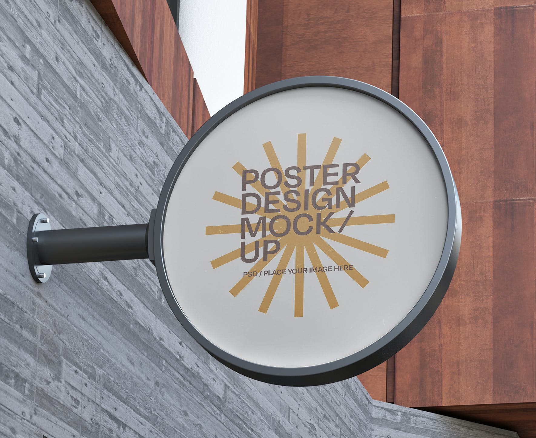圆形灯箱广告牌海报样机,模板上有一个智能对象可帮助您调整设计。只需拖放即可。使用起来非常简单。使用纯色图层易于重新着色。高分辨率 (300 dpi) 。