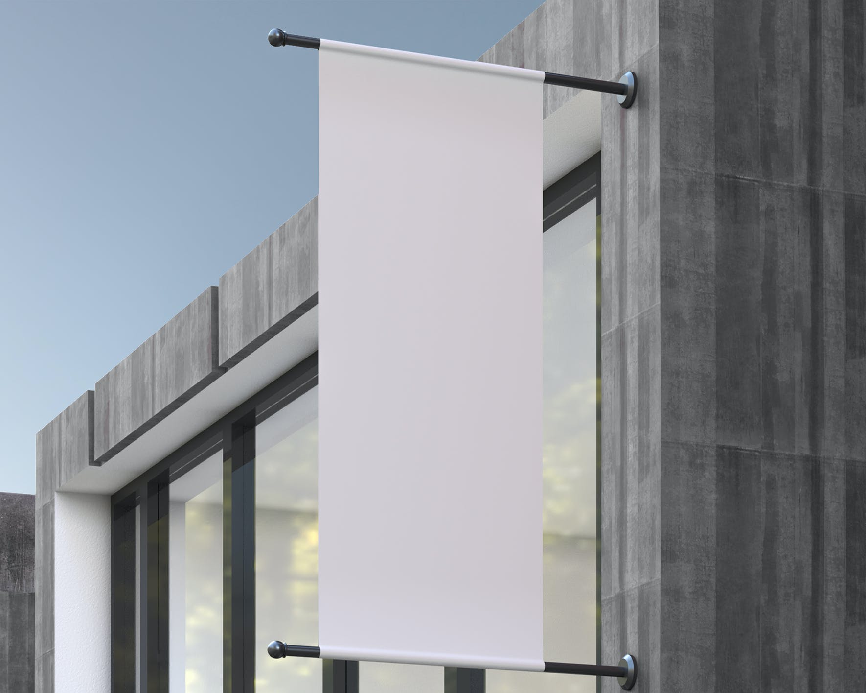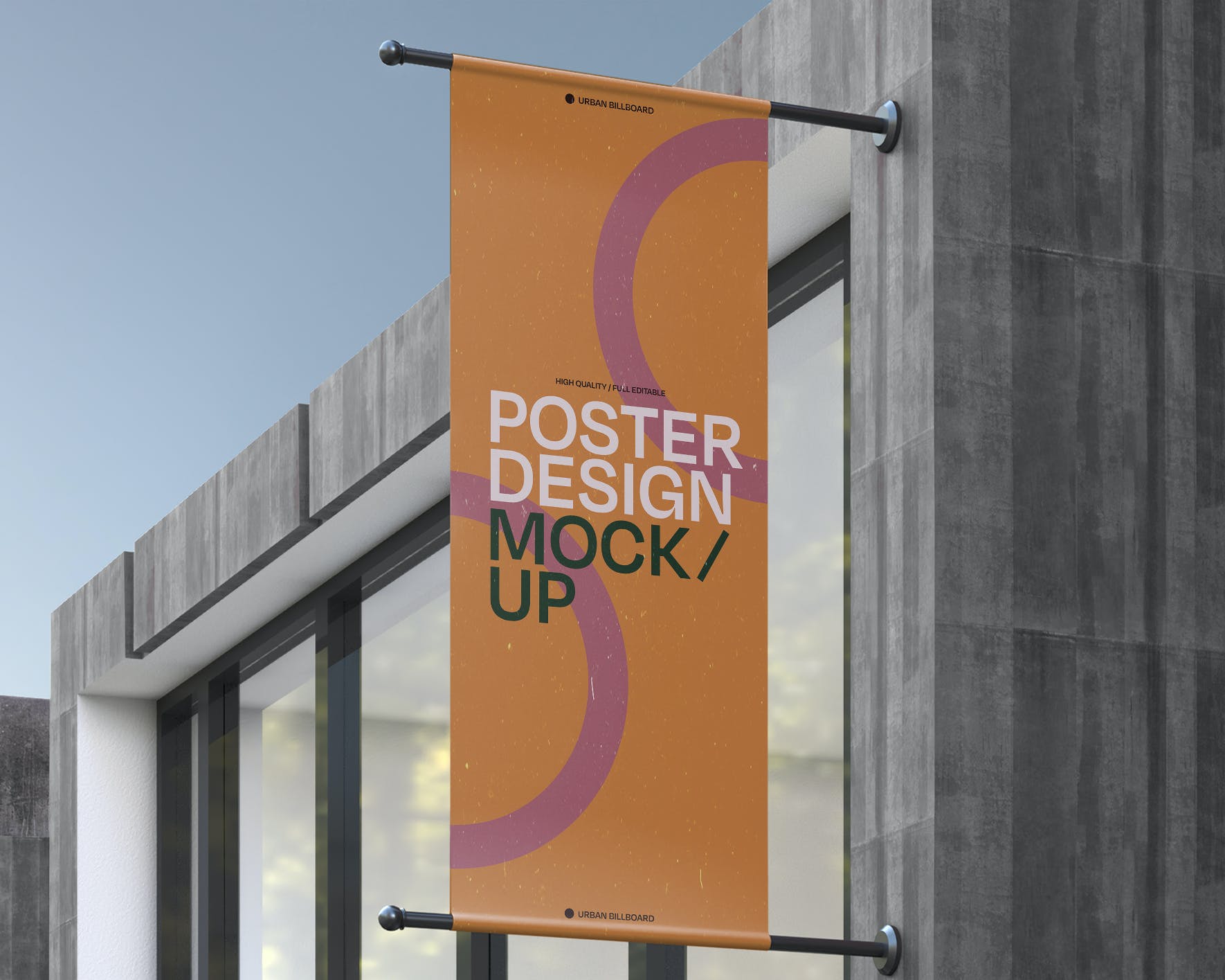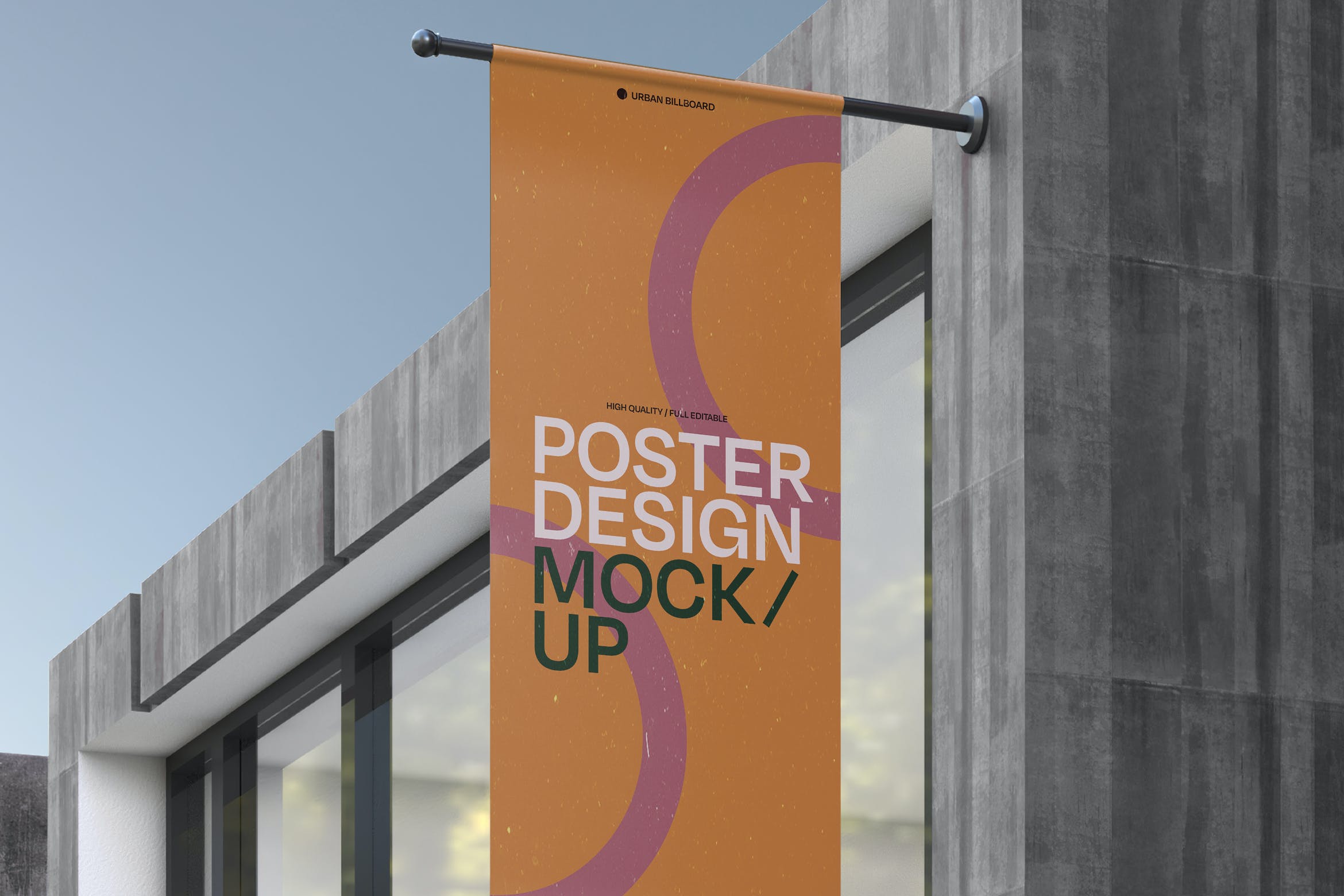 矩形广告旗帜海报样机,模板上有一个智能对象可帮助您调整设计。只需拖放即可。使用起来非常简单。使用纯色图层易于重新着色。高分辨率 (300 dpi) 。