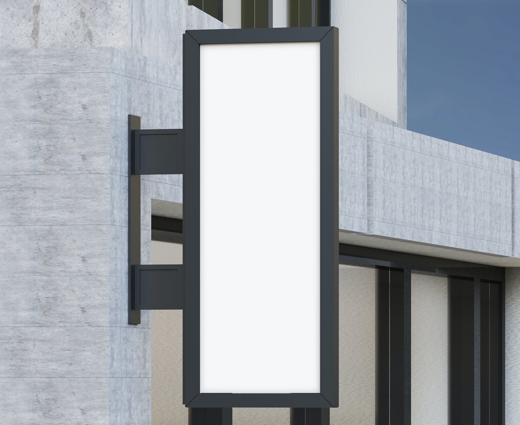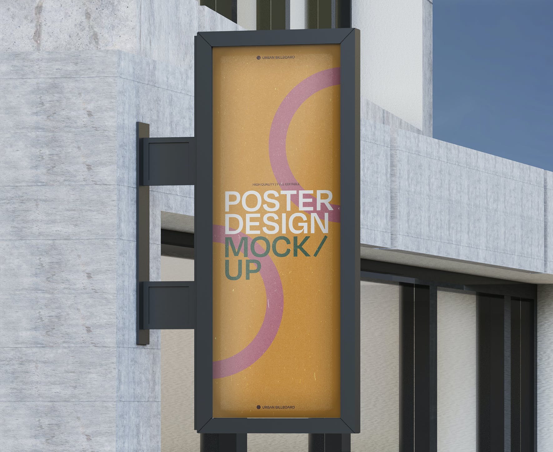门头框架广告牌海报样机,模板上有一个智能对象可帮助您调整设计。只需拖放即可。使用起来非常简单。使用纯色图层易于重新着色。高分辨率 (300 dpi) 。