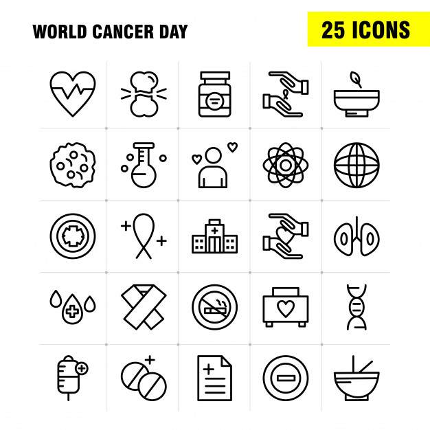 世界癌症日图标,信息图形移动用户界面工具包,可以用于医疗相关的设计。