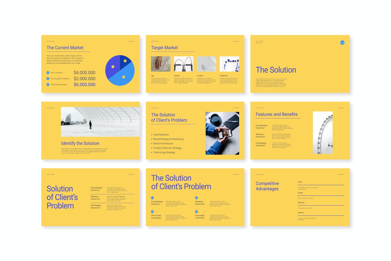 这个模板将适合数字代理pitch deck。它将帮助你向投资者展示,为什么在所有的想法中,你的想法是值得押注的。简单,干净,切中要害。