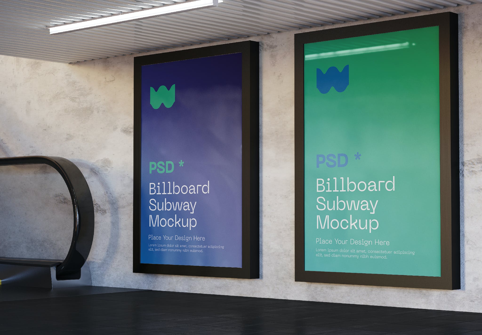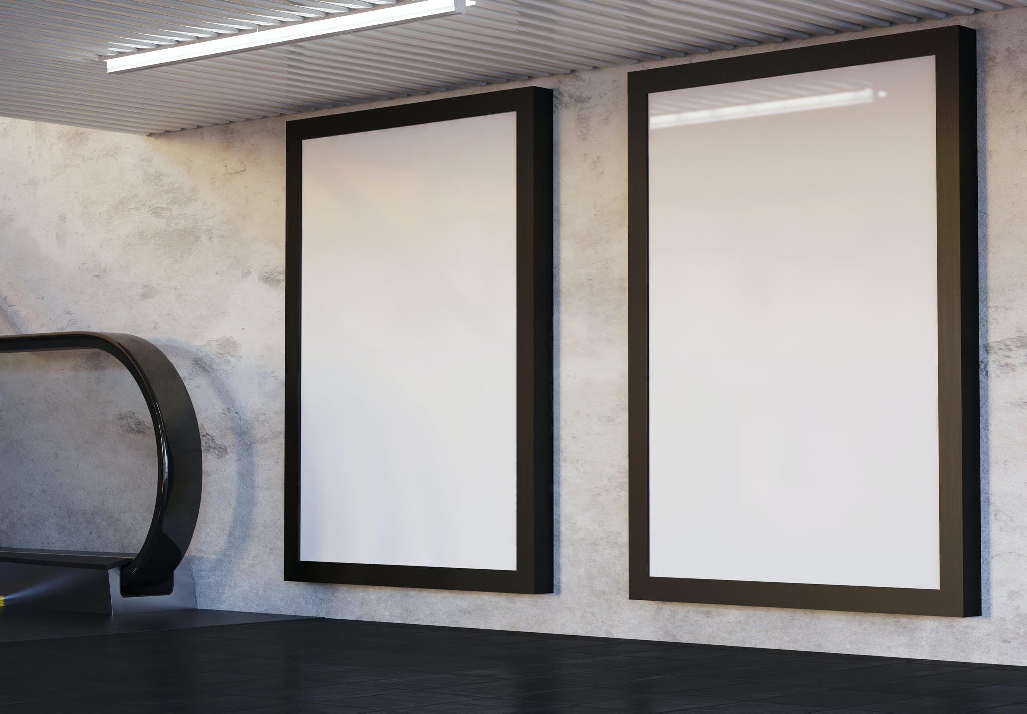 Two Vertical Subway Advertisement模型上有一个智能对象可以帮助你调整设计,拖放即可。