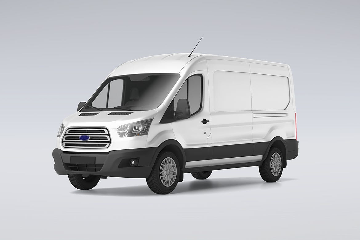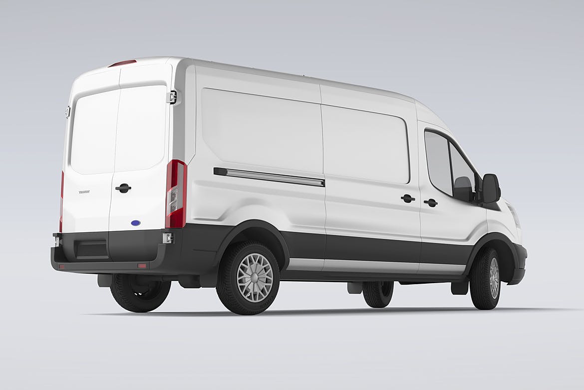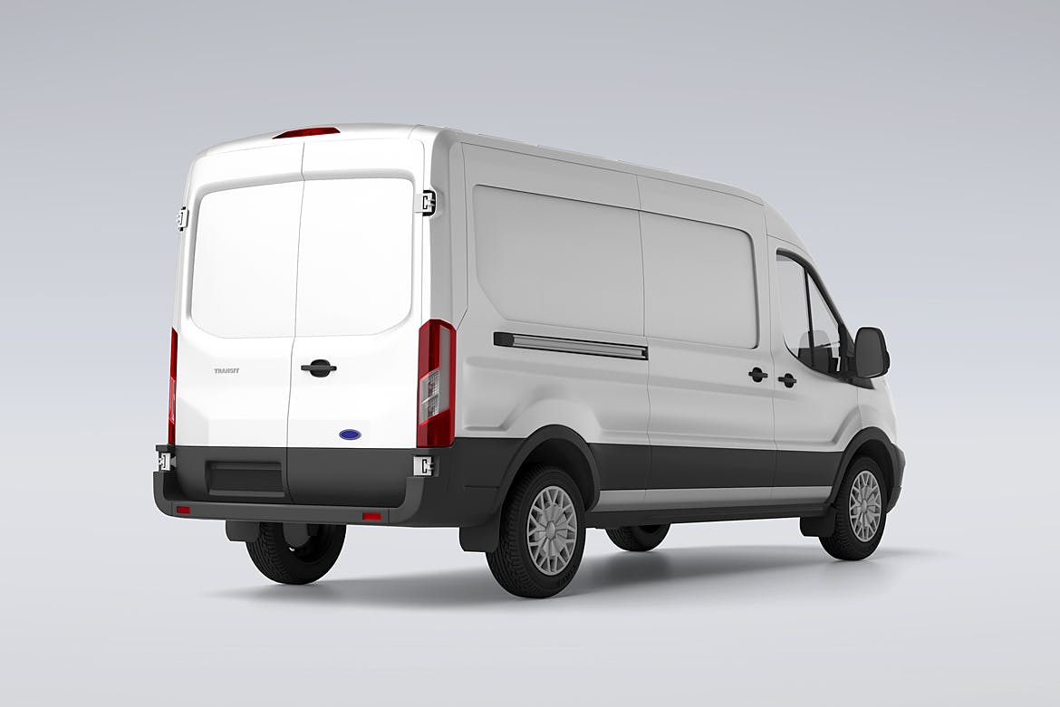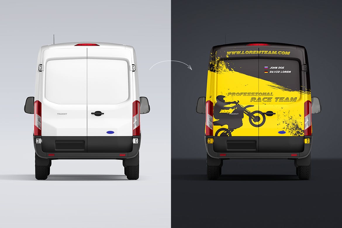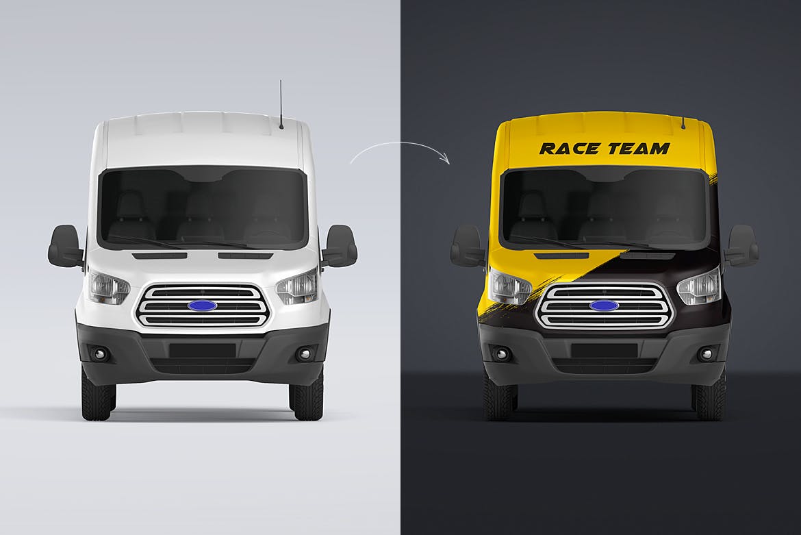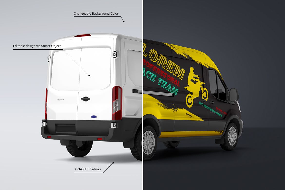 一套8个逼真且易于编辑的面包车多角度广告展示设计样机。