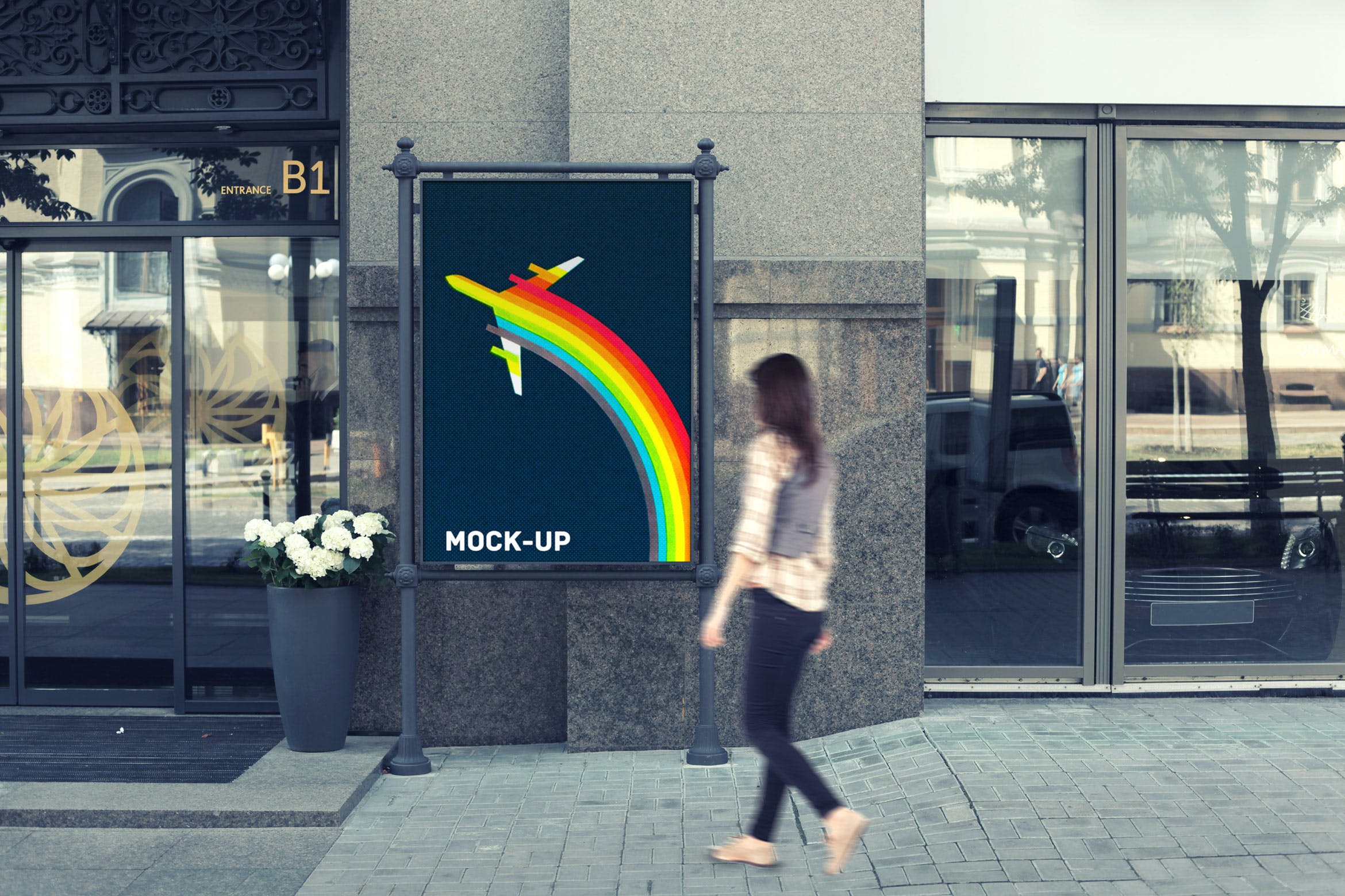 户外海报效果图展示样机模板,以专业的方式展示你的海报传单作品。