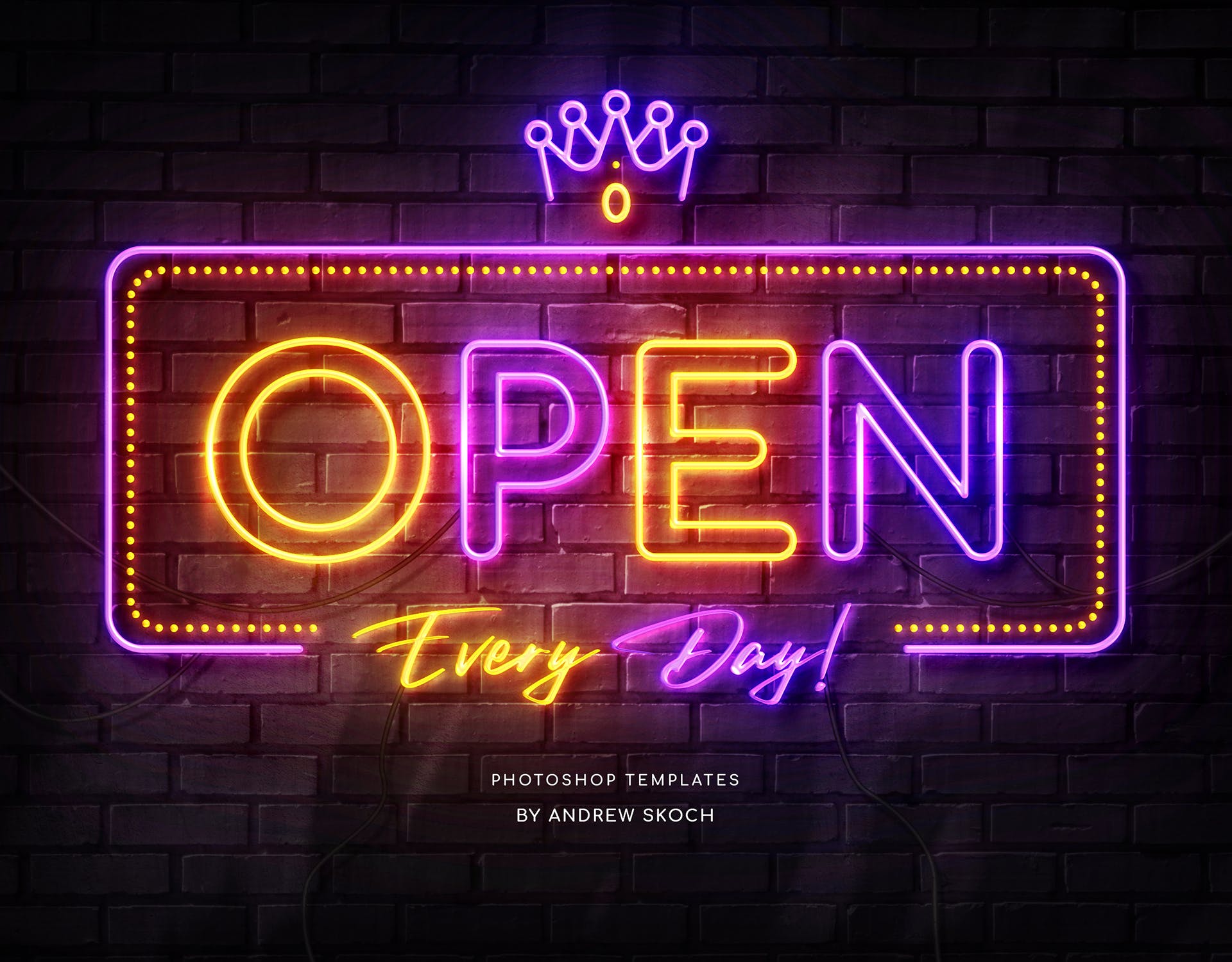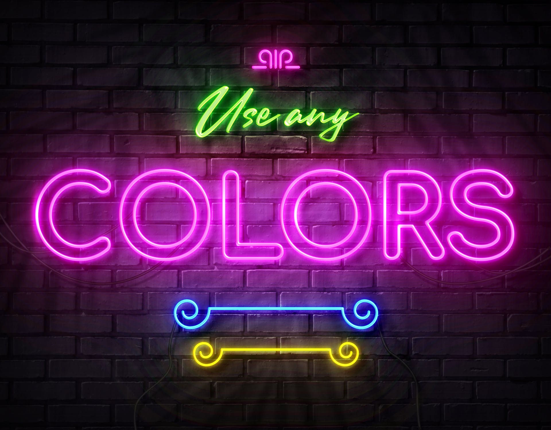 使您的文字或徽标发光且充满霓虹灯色彩,适用于文字,徽标,形状或任何图层的霓虹灯效果。您可以为文本,徽标,装饰元素选择任何颜色。 这些颜色将用于霓虹灯管和发光! 这简单)