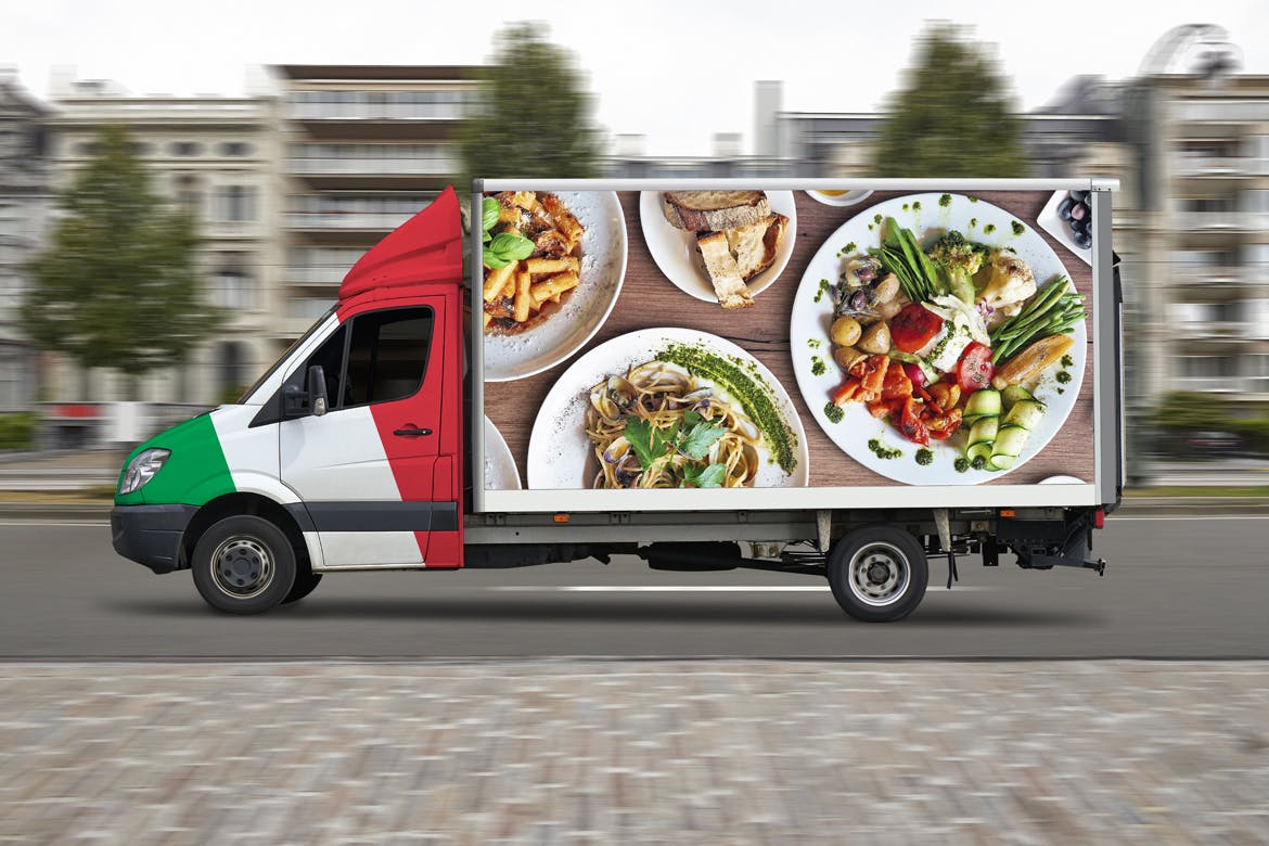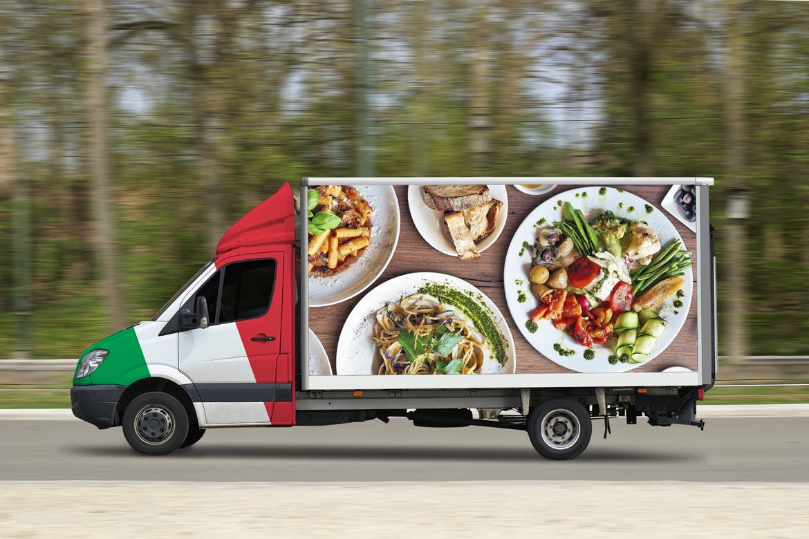 送货卡车行驶在森林公路城市街道上,通过这种静态样机,可以节省时间并让您的品牌看起来引人注目。 使用智能对象轻松放置您的设计,双击“智能层”,复制并粘贴您的图稿,保存即可完成!