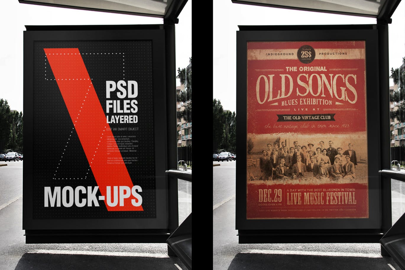 1个用于您的传单、海报和广告的城市街道传单海报张贴效果图样机,通过智能对象进行样机工作:您不需要任何Photoshop技能,只需将设计放入智能对象中,它就会自动更新样机。