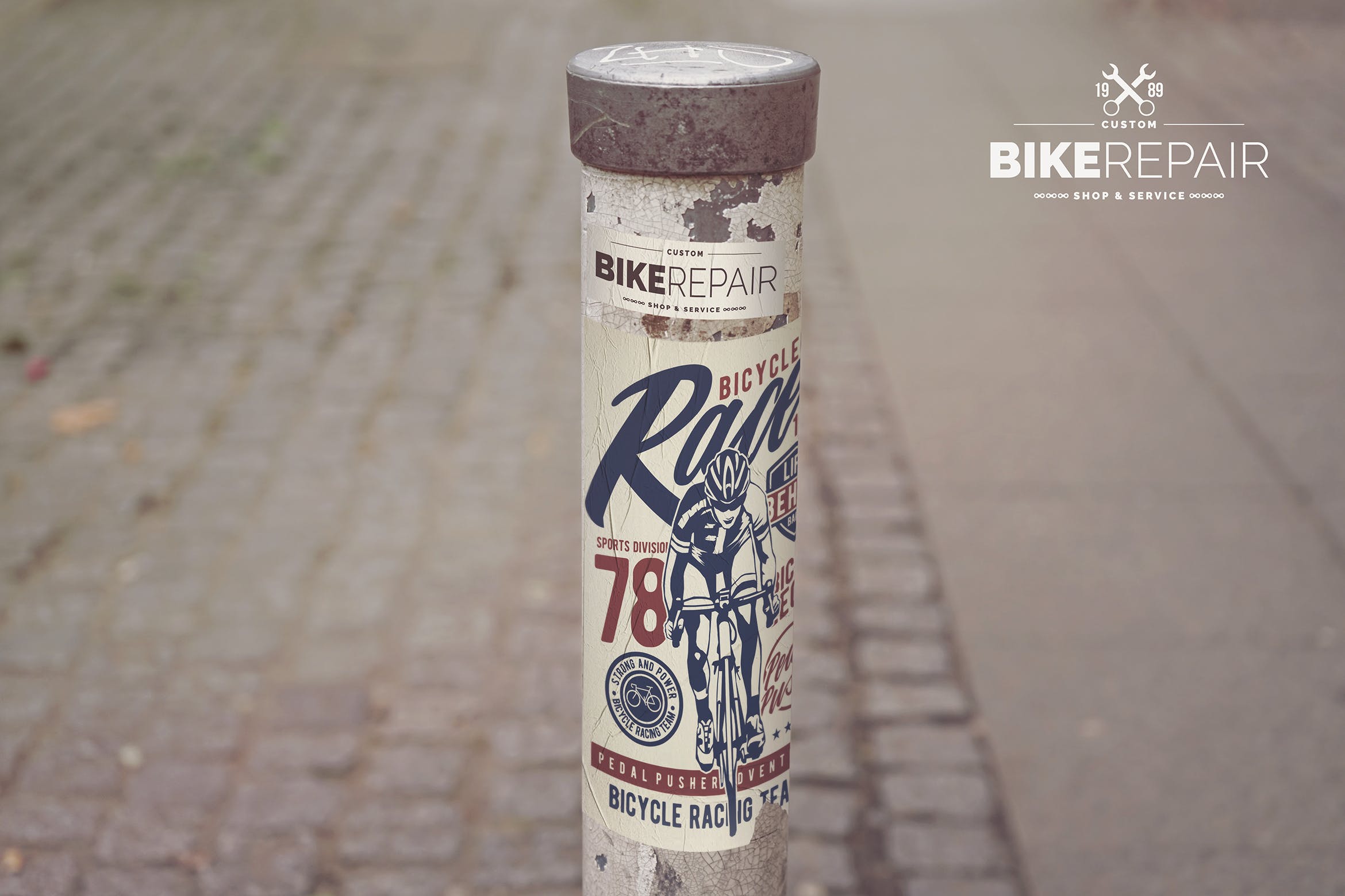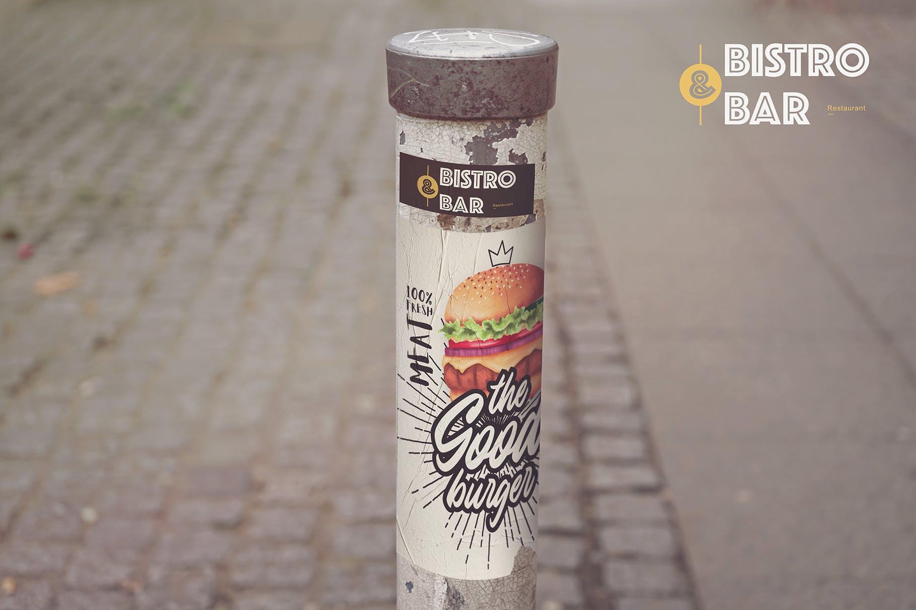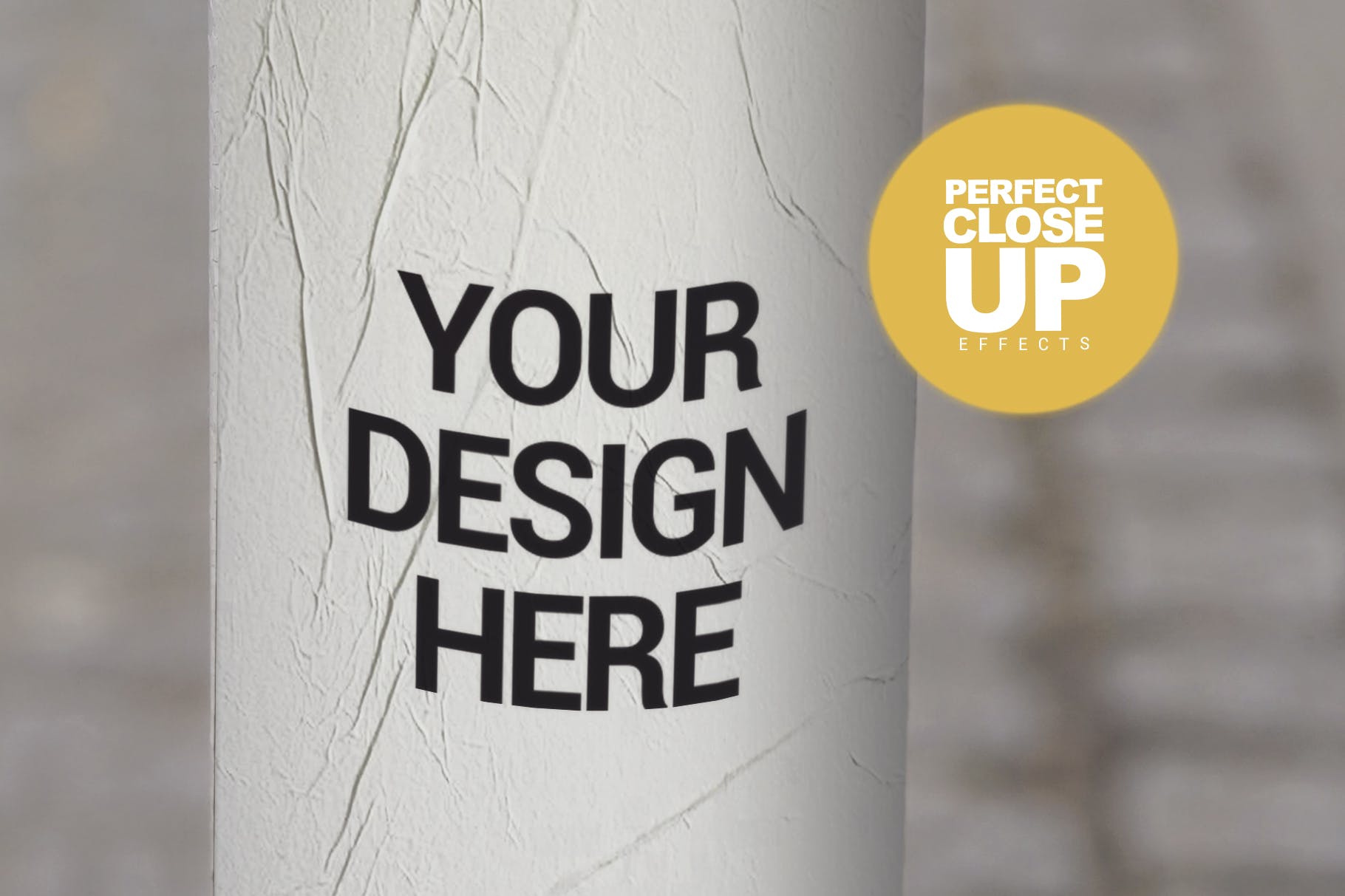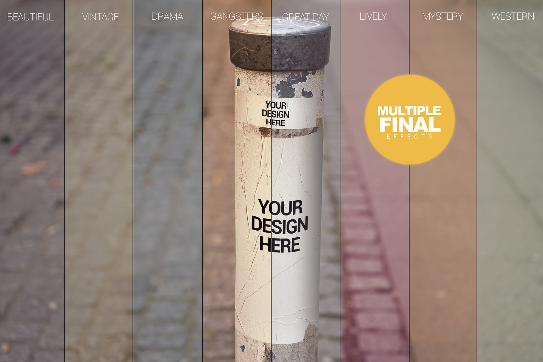 城市圆柱标志/海报张贴效果样机模板,只需将您的设计放入智能对象图稿层中,保存照片即可完成!这款模板非常适合展示您的设计。