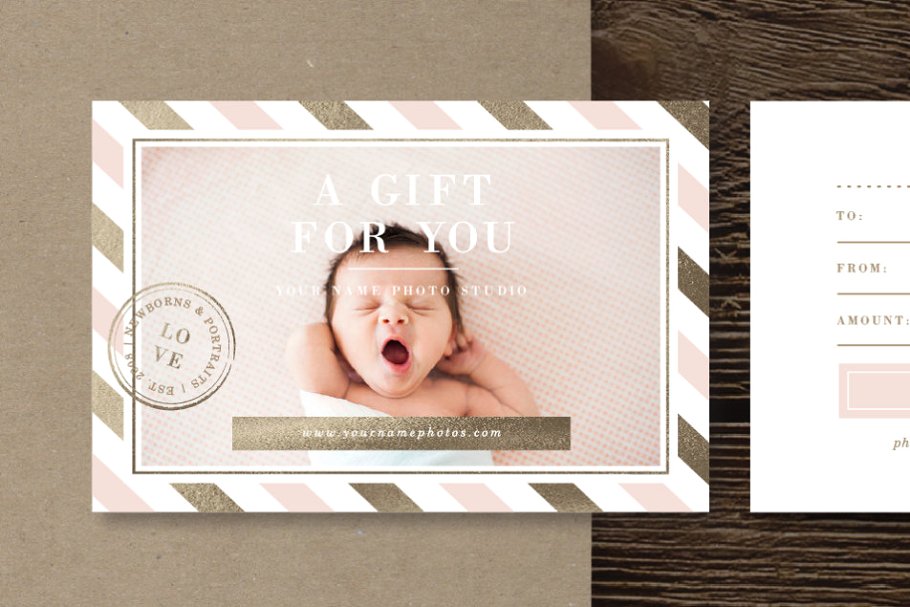 新生儿和肖像摄影师的Photoshop模板,送你的客户一份礼物给他们的朋友和家人。用我们的高端定制设计,吸引您理想的客户。