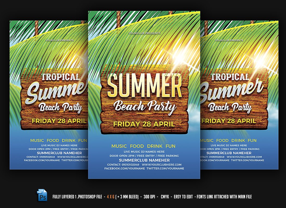 夏日沙滩派对宣传单