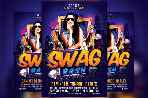 Swag Bash派对传单模板是为推广您的下一个俱乐部和派对活动而设计的。这个打印就绪的高级传单模板包括一个300 dpi打印就绪的CMYK文件。所有的主要元素都是可编辑和可定制的。您可以通过文本工具编辑主文本,您可以通过智能对象替换模型图像,在您的图层菜单中右键单击edit smart object。传单是完全分层和组织,以保持定制非常简单!