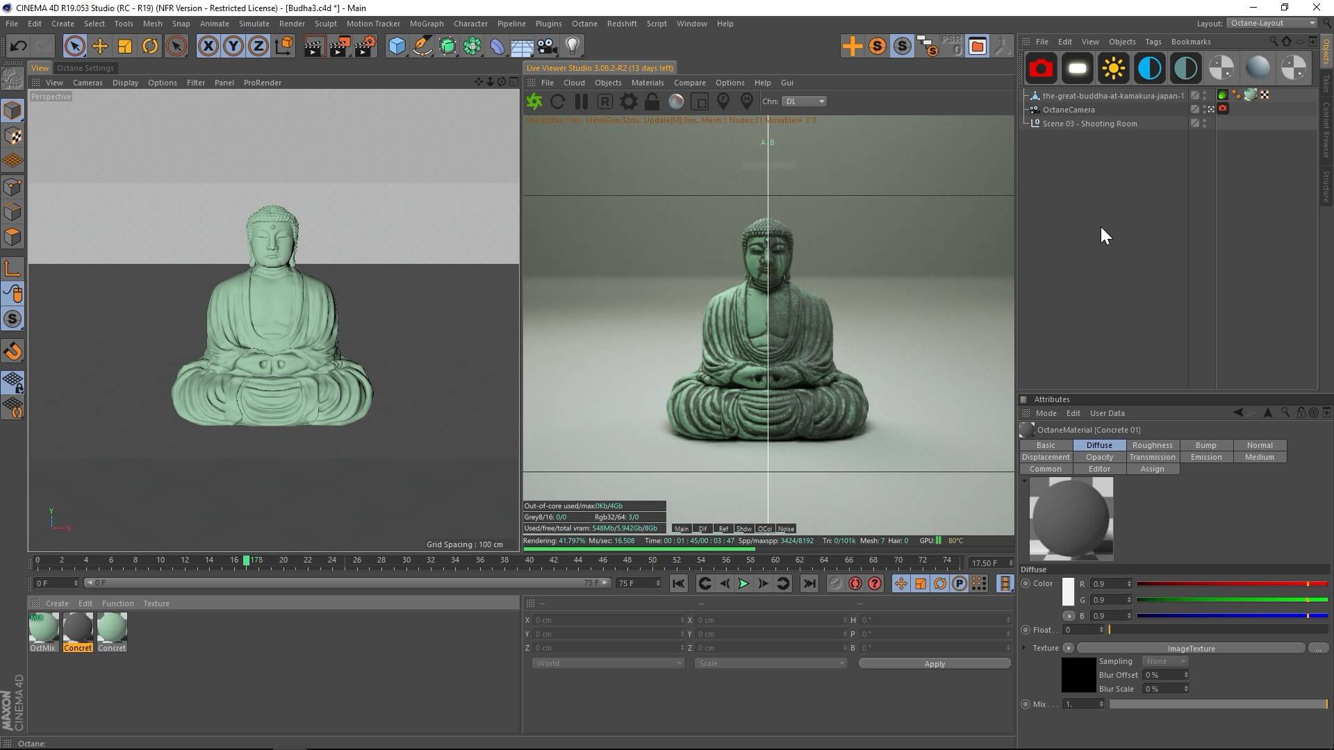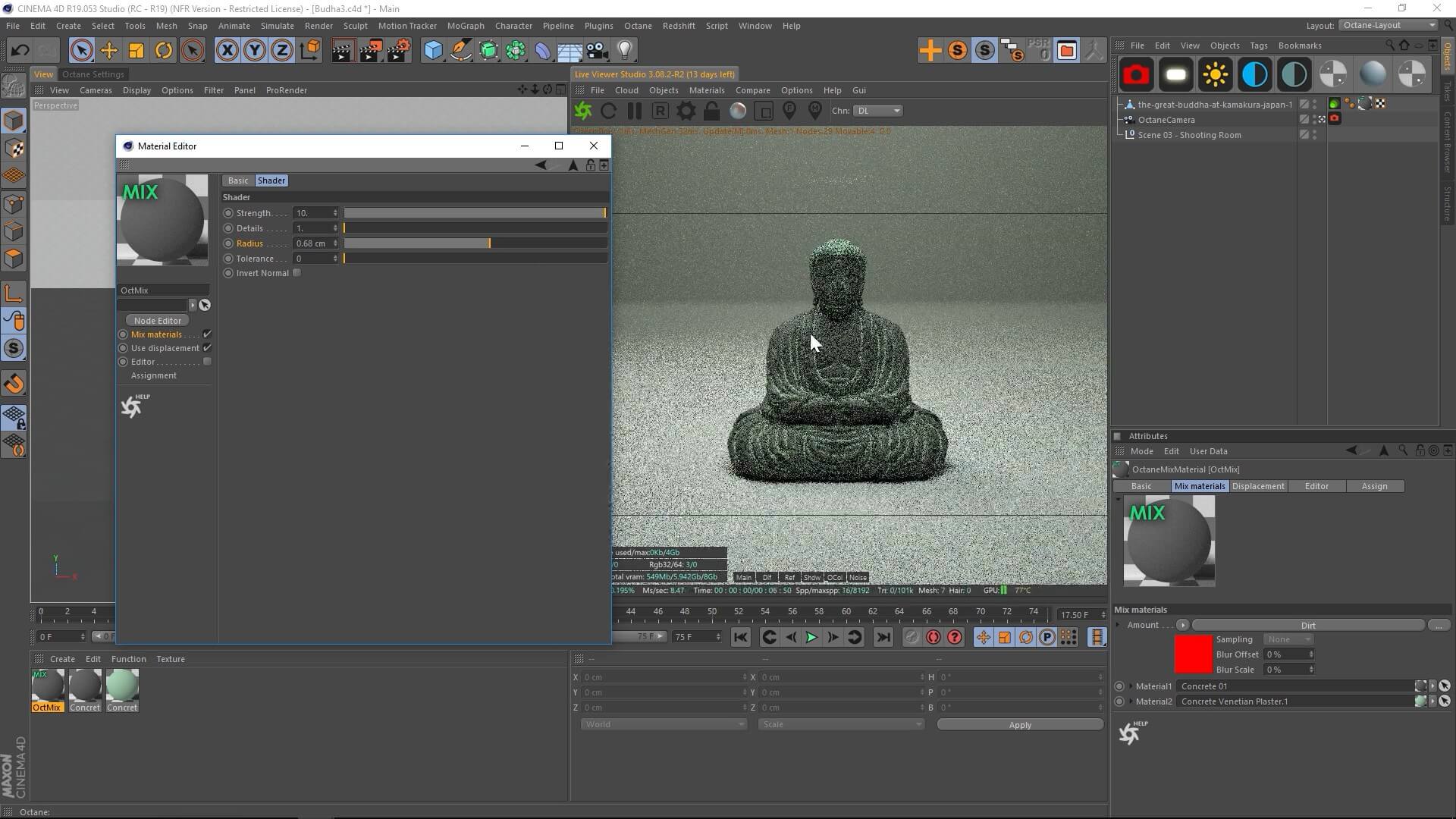 在本教程中您将学习如何通过使用颜色校正节点将污垢节点与图像纹理相结合,为您的Octane渲染添加真实感。