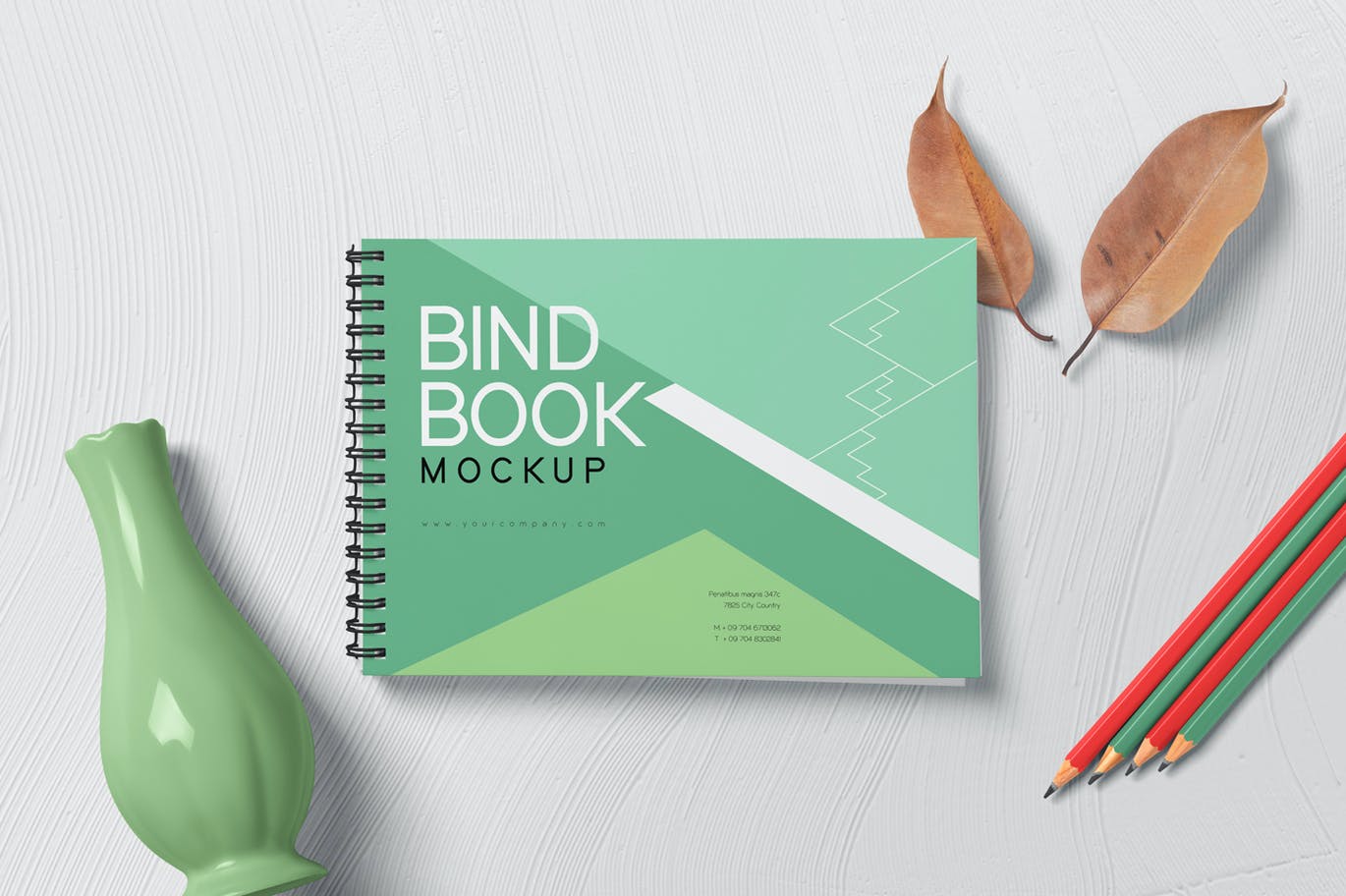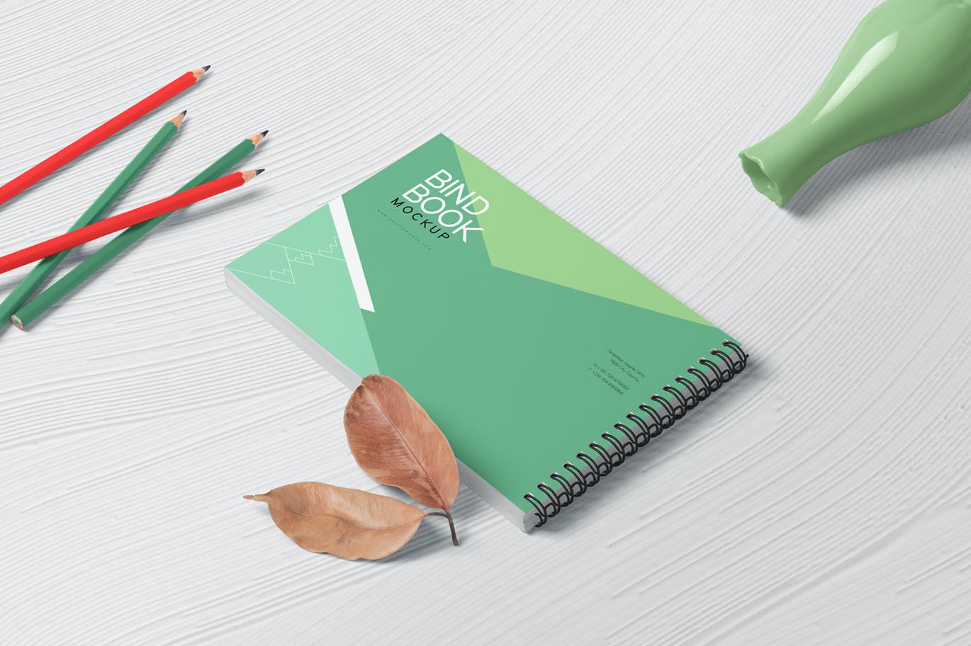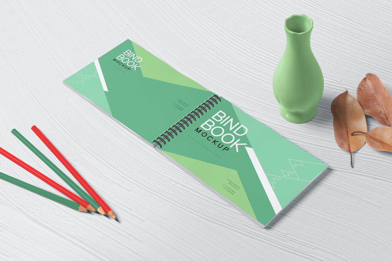 这些 A5尺寸横版螺旋活页书籍设计样机素材是真实展示您的图书品牌设计的完美选择。您还可以使用这些为您的在线商店制作螺旋书图像。为您的演示需求提供一些额外的项目和独特的视角。只需在 Photoshop 中打开这些文件,即可无限展示您的图书品牌设计。