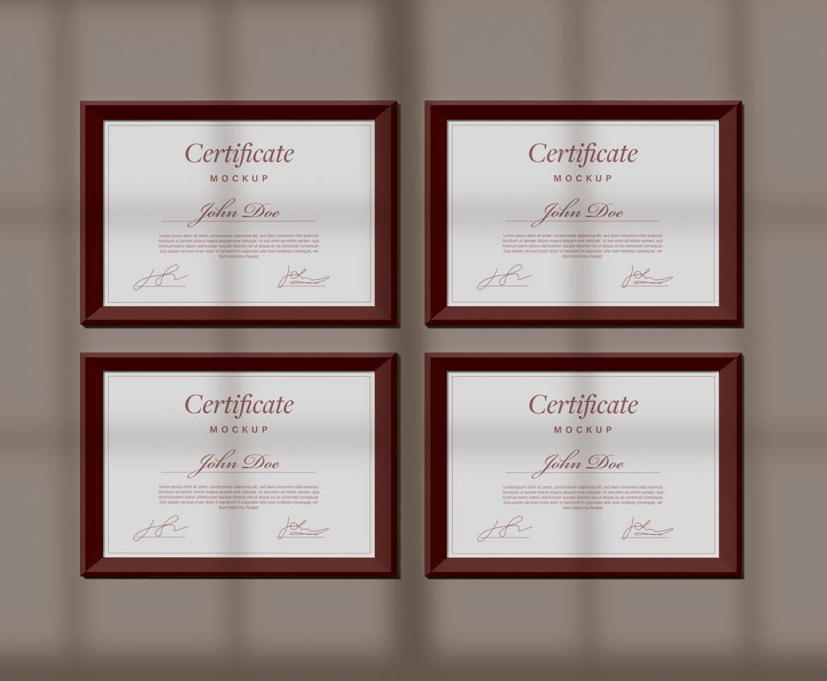 灰色框架证书样机psd模板,模板内有一个智能对象,可帮助您调整设计。只需拖放即可。使用起来非常简单。使用纯色图层轻松重新着色。高分辨率 (300 dpi),享受高品质!示例设计不包含在下载文件中。