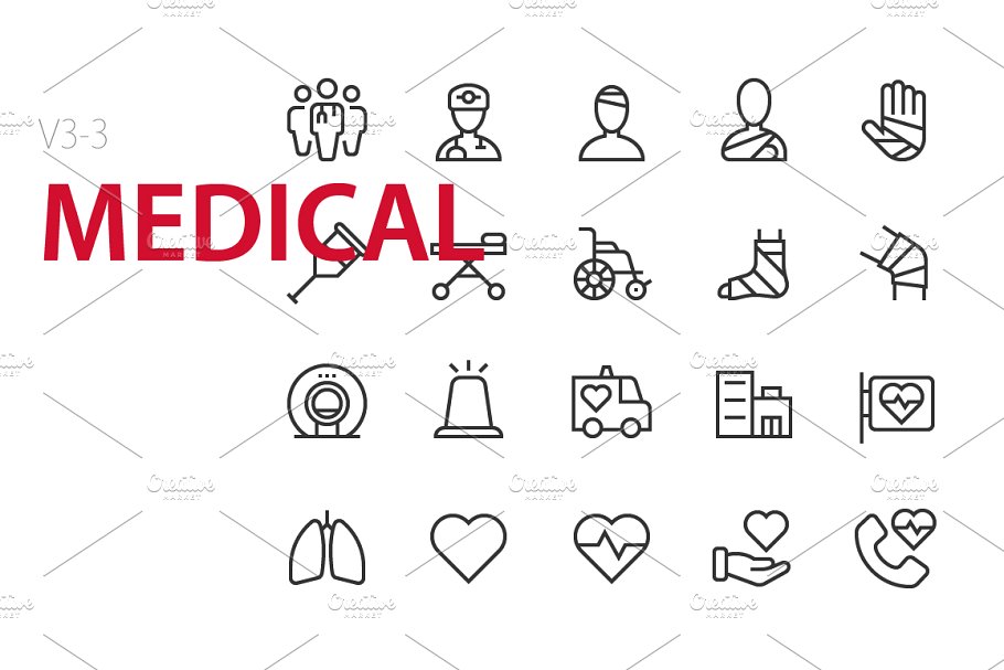 完美的UI像素,精心制作的矢量医疗细线图标,48×48准备24×24网格的网页图形和应用程序。