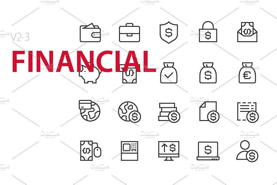 完美的UI像素,精心制作的矢量财务细线图标,48×48准备24×24网格的网页图形和应用程序。