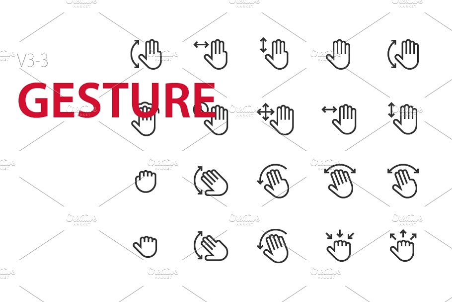 UI像素,完美精心制作的矢量手势细线图标,48×48准备24×24网格的网页图形和应用程序。