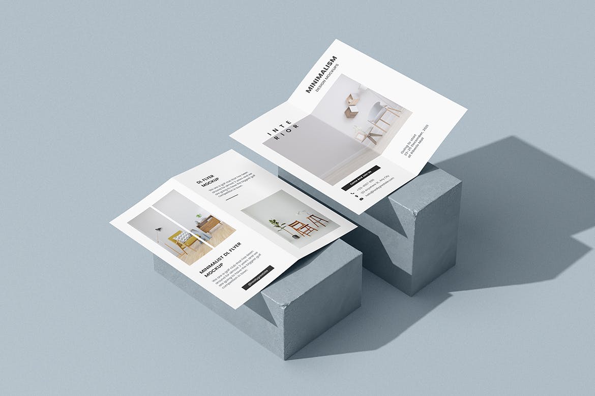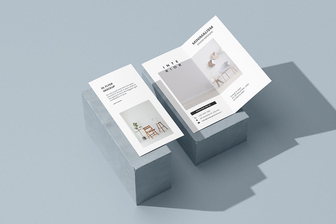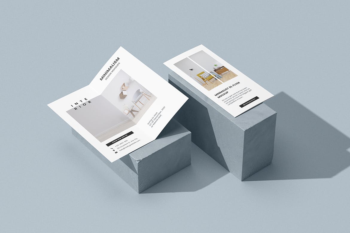 在这些华丽风格的样机上展示您的双折DL传单/小册子布局。该模型包括6个具有良好分层PSD文件的项目,该样机还使用了智能对象功能,这意味着您可以在几秒钟内轻松快速地用自己的设计更改当前设计。