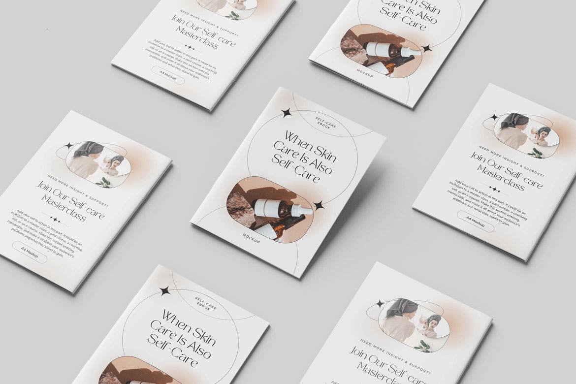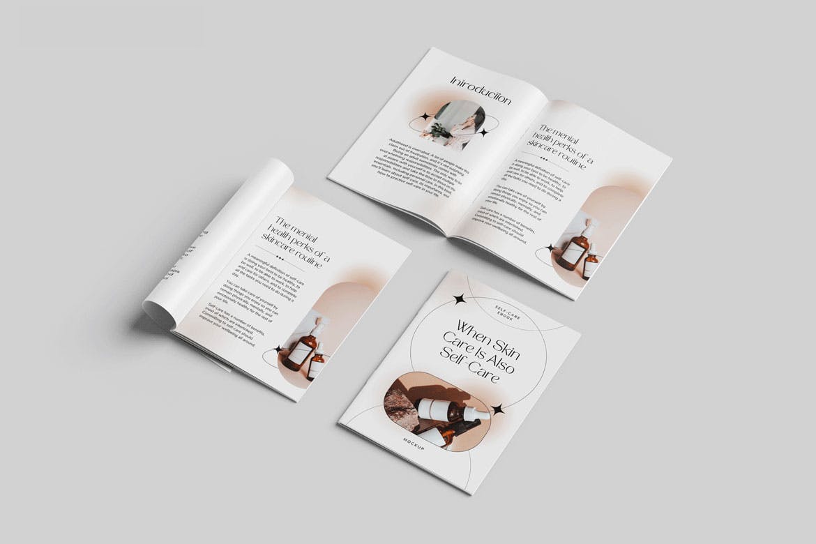 本项目由3个不同的A4小册子/目录样机组成。这些样机文件使用智能对象功能,可帮助您在几秒钟内更改设计。