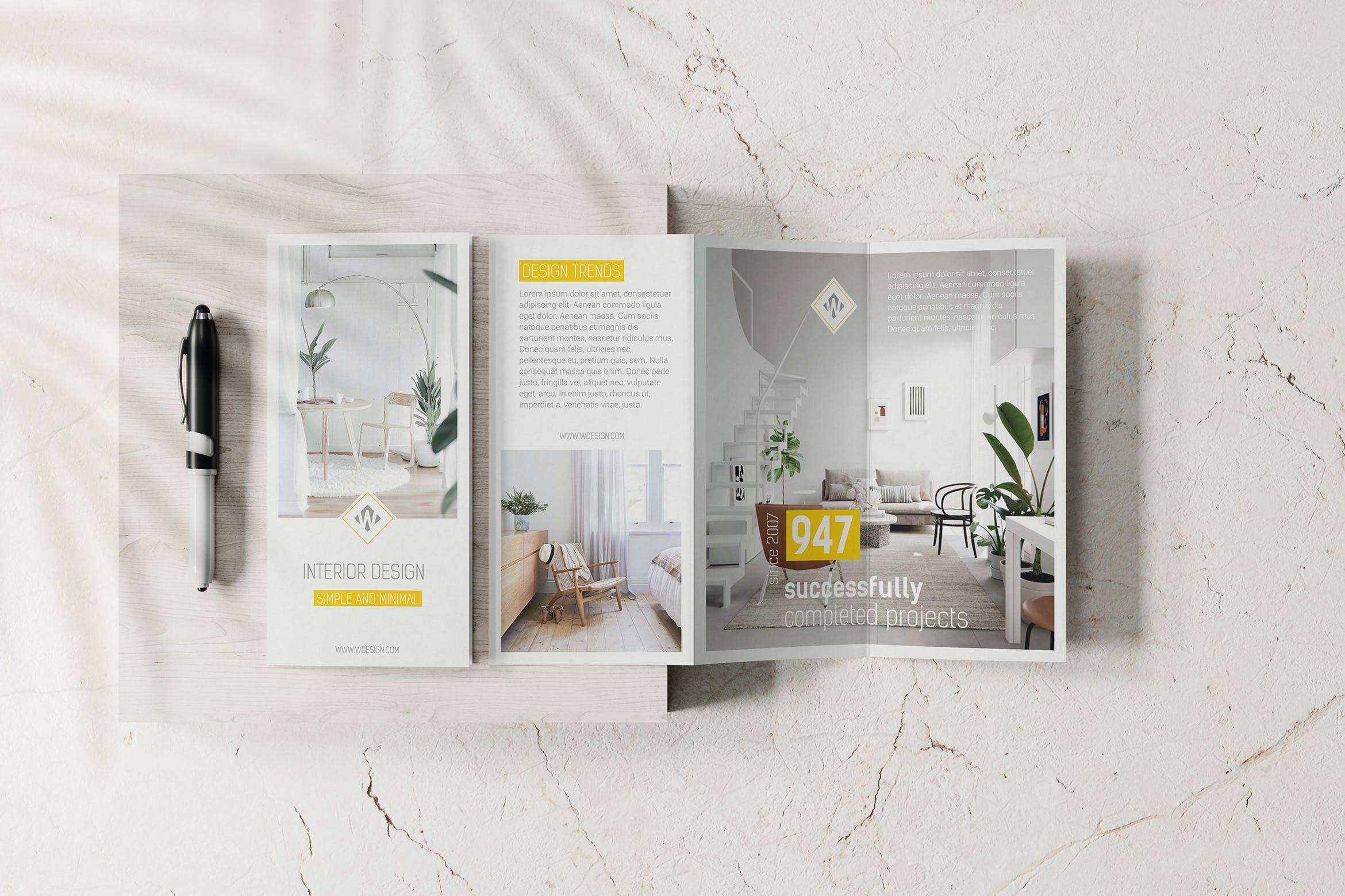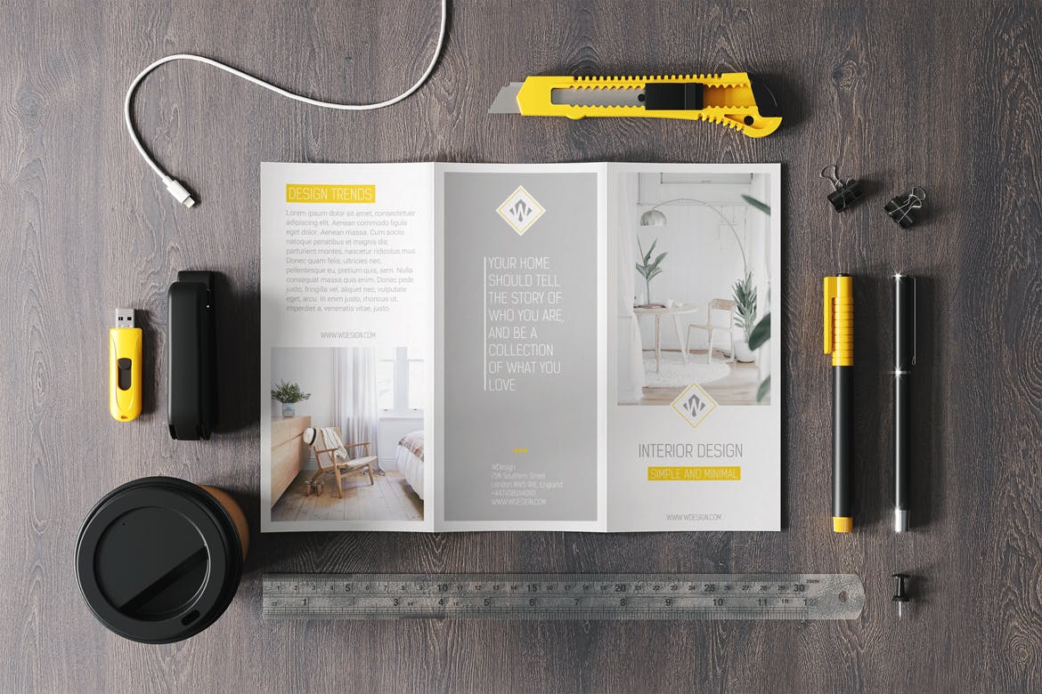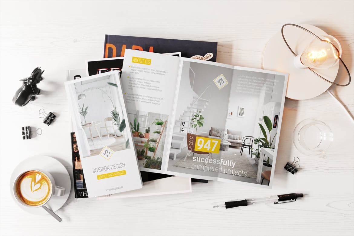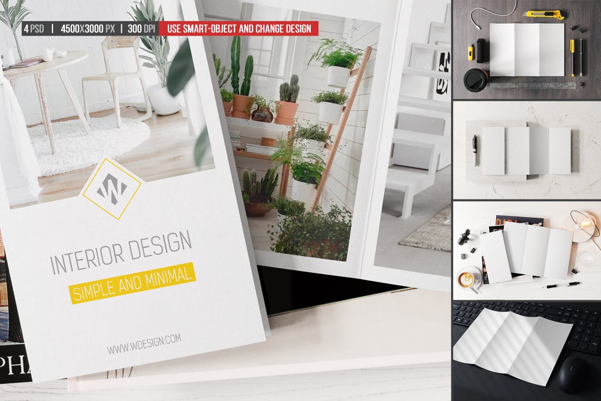 A4三折页小册子宣传册样机素材,高分辨率,4500x3000ox,300dpi,通过智能对象轻松快速地编辑,组织良好的图层和文件夹。