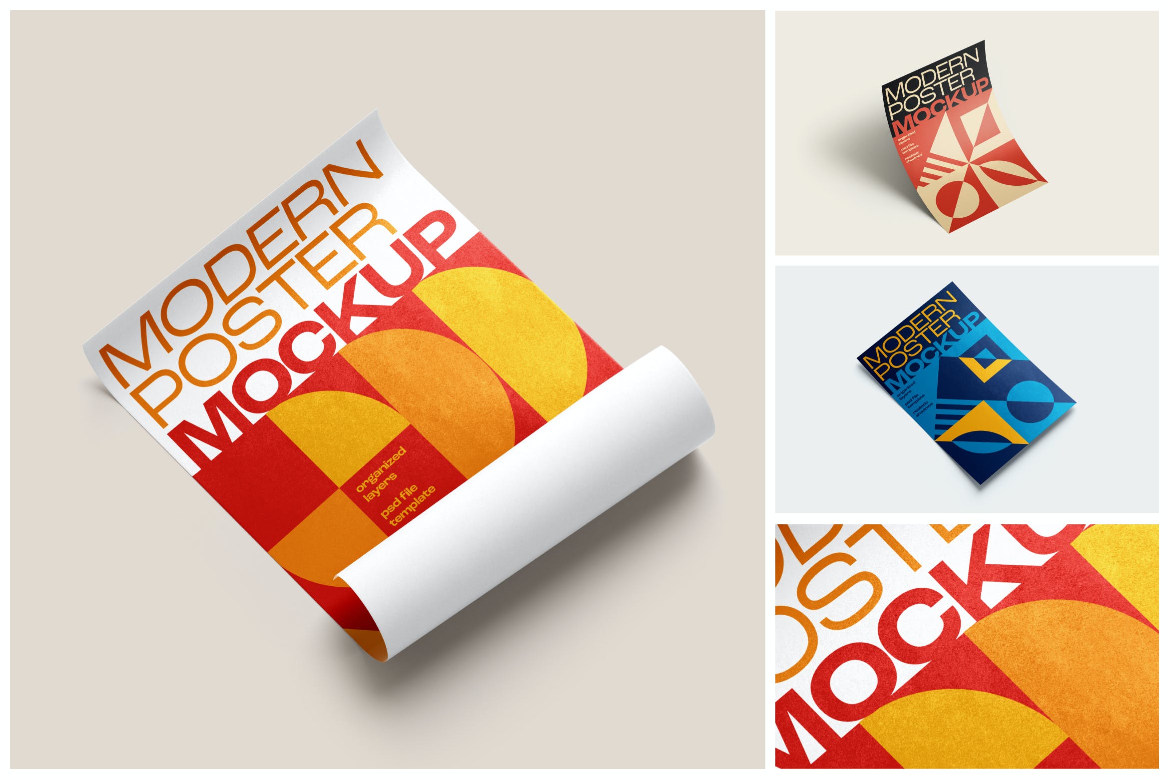 干净易用的传单和海报样机。以3种完美的风格展示你的作品,比如传单、海报、文具和其他物品。很简单!你只需要双击智能对象,粘贴你的作品,保存即可。