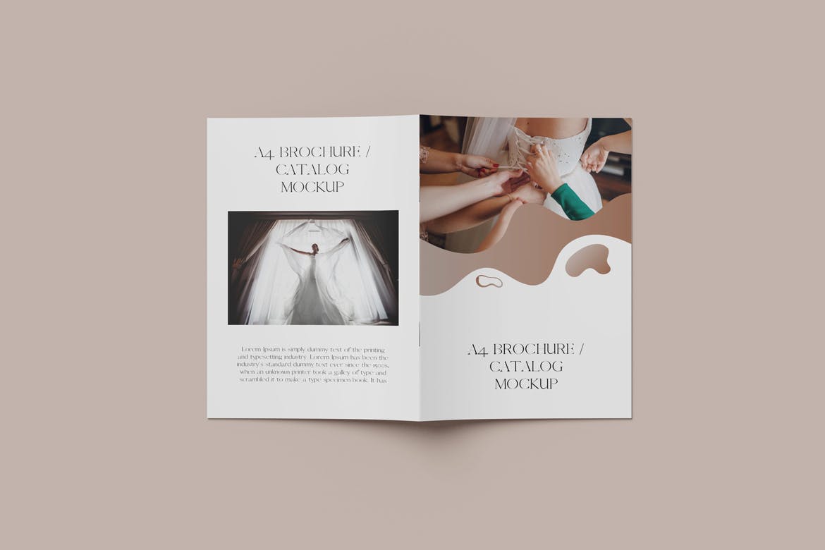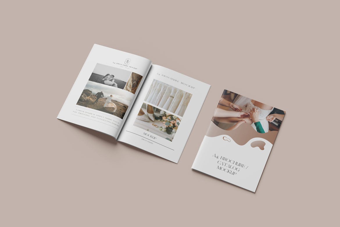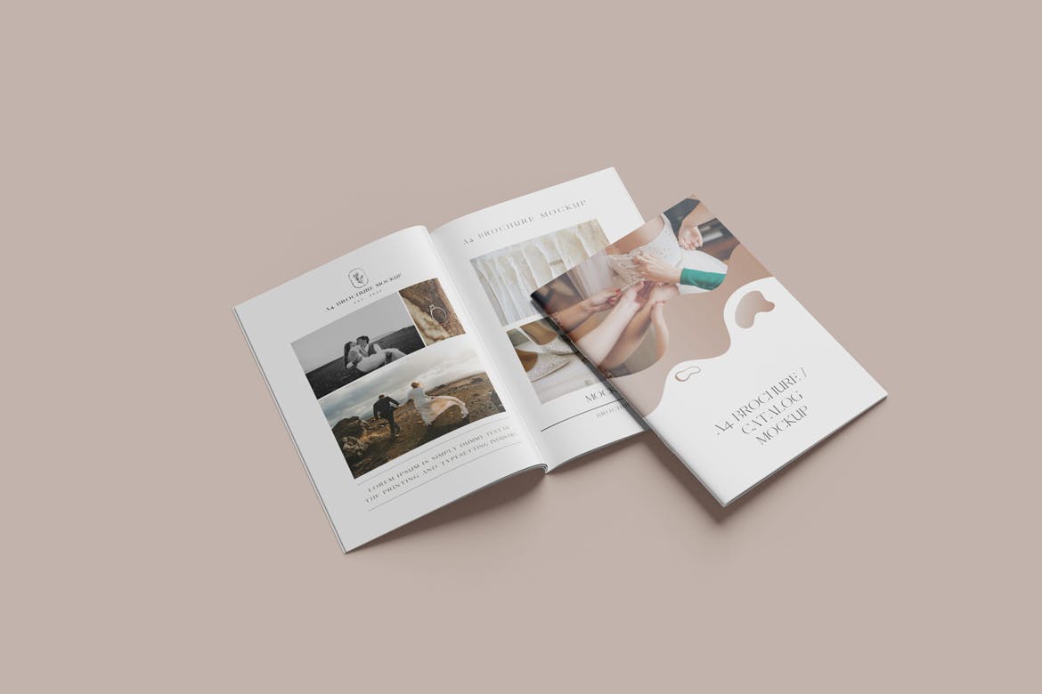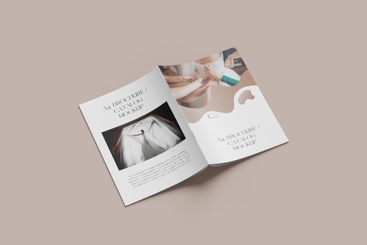 这个A4手册/目录画册样机素材可以帮助您以非凡的设计宣传您的产品设计。使用此样机以最简单的方式制作您自己的活动,它适用于项目、品牌和服务。它易于使用和定制。