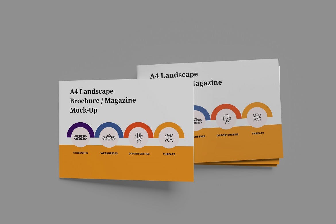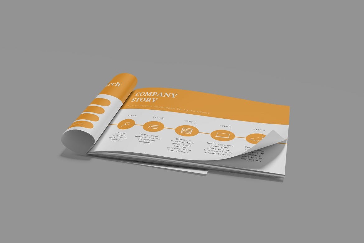 本项目由3个不同的横版手册样机组成。这些样机文件使用智能对象功能,可帮助您在几秒钟内更改设计。