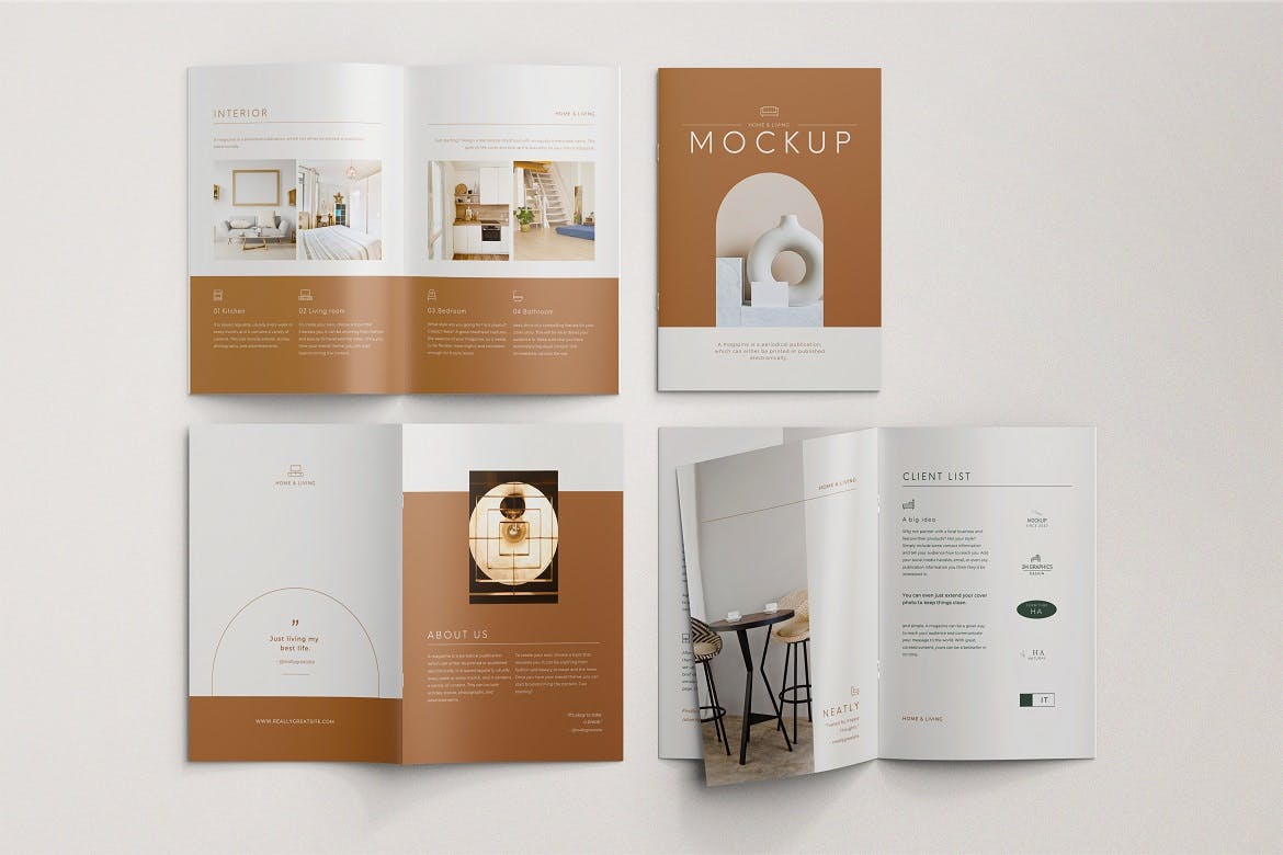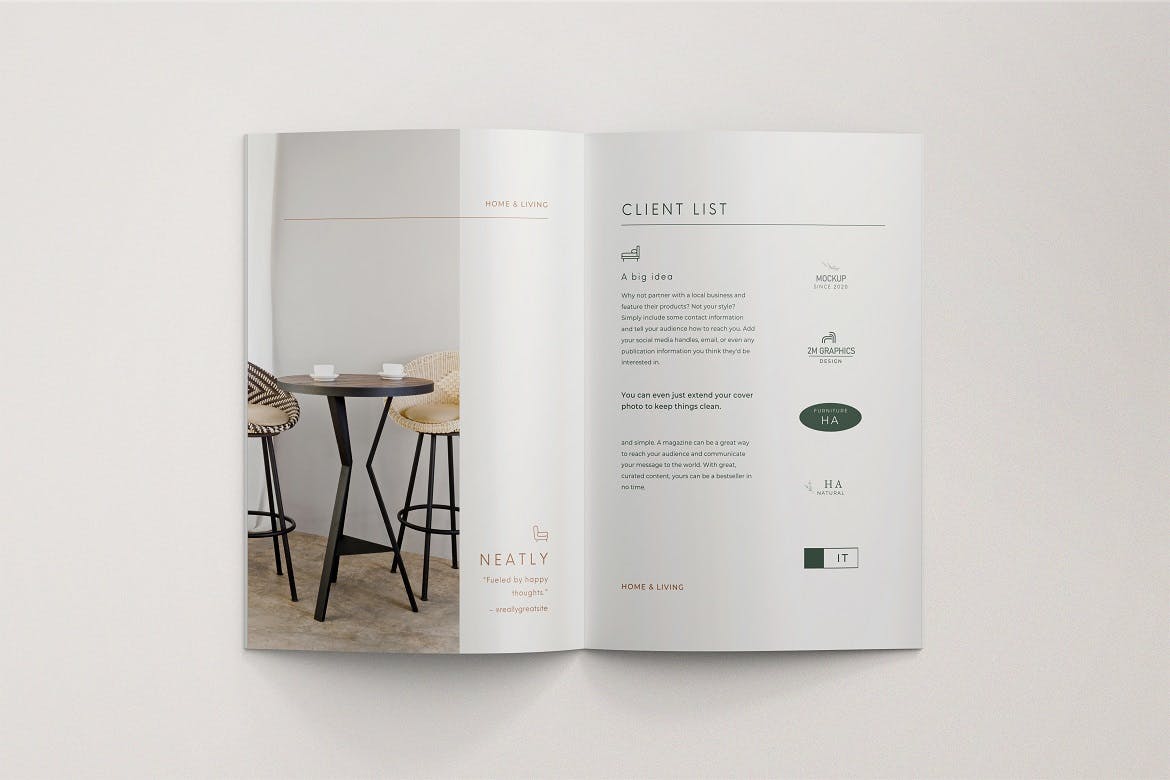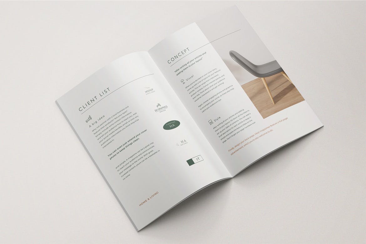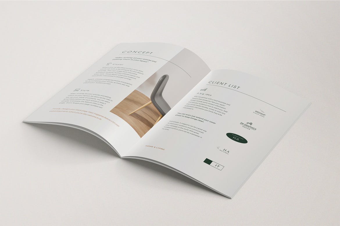 展示A4尺寸杂志目录模板设计的真实效果。这是photoshop文件,可帮助您将当前图像更改为自己的图像。