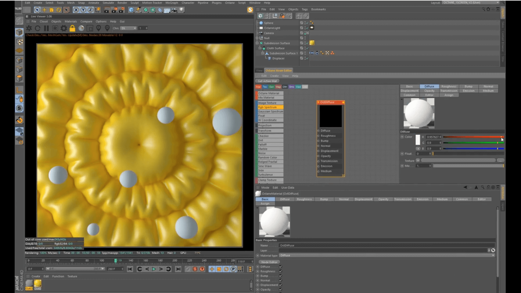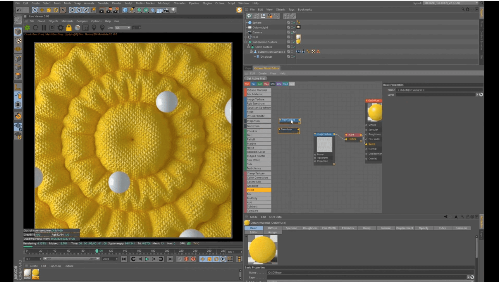柔软的织面加上落入的弹性小球,形成了这次的C4D教程并结合Octane渲染完美至极。还不赶快来下载!!