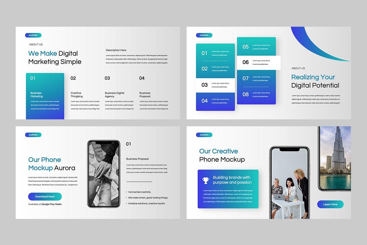 多用途的专业演示模板。内置 16:9(高清)。干净、现代且易于编辑。非常适合您的业务、Pitch Deck、创意机构、品牌指南、报告、投资组合演示。