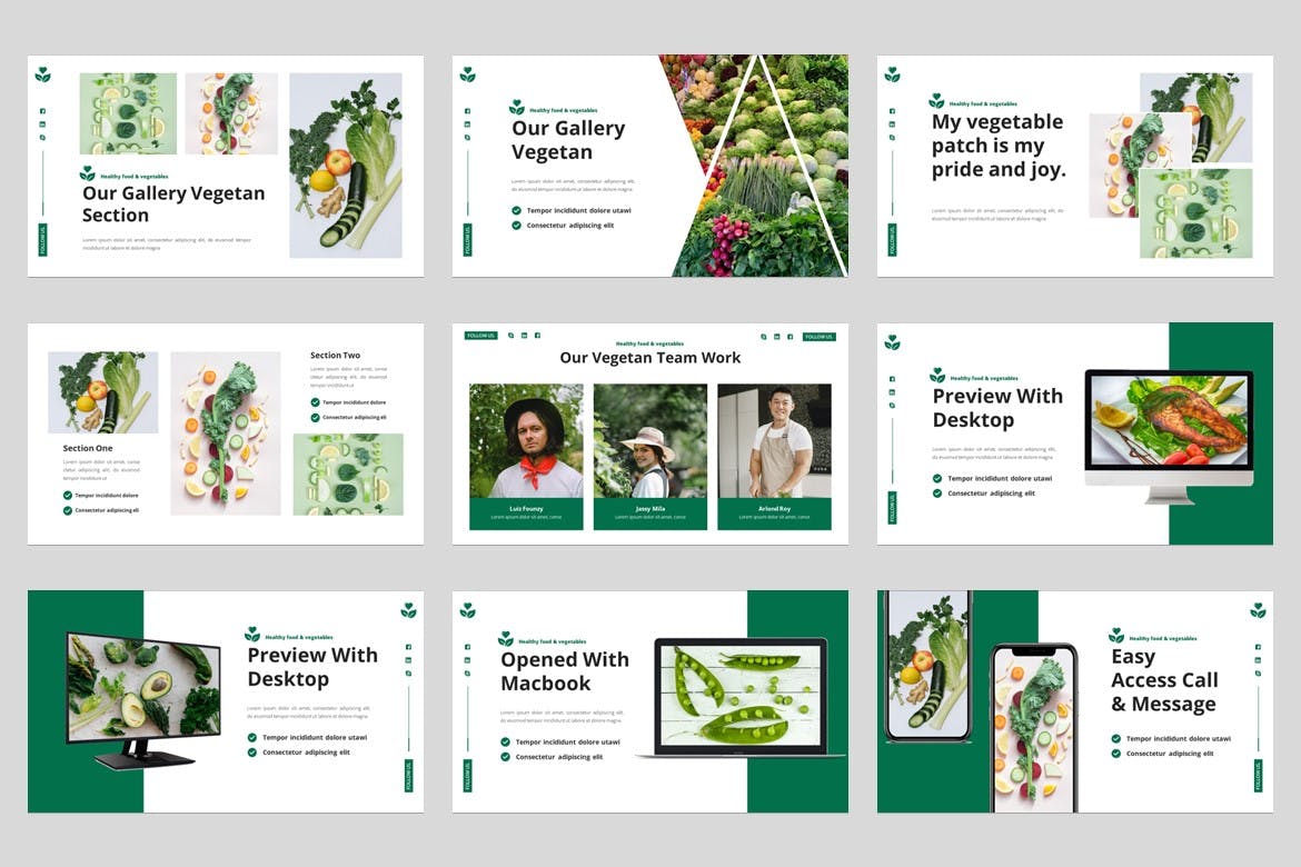 健康食品和蔬菜ppt模板具有专业、超现代和独特的设计,每张幻灯片的制作都充满了爱和对细节的关注。这是一个创意 Powerpoint 模板,可用于任何类型的演示:商业、投资组合、企业、品牌、广告等。