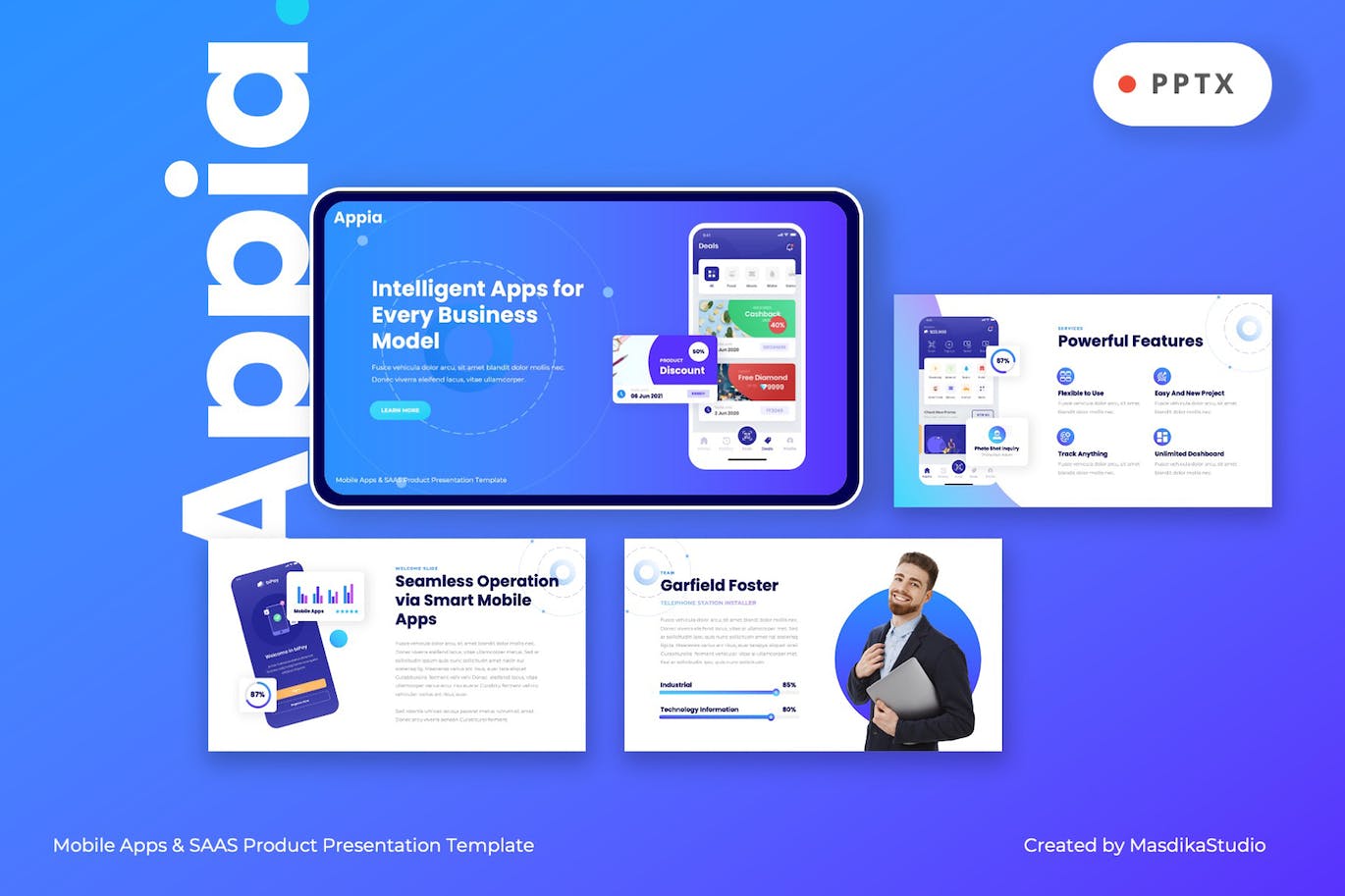 移动应用程序和 SAAS 产品 Powerpoint 模板具有专业、超现代和独特的设计,每张幻灯片的创建都充满了爱和对细节的关注。